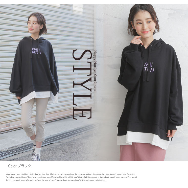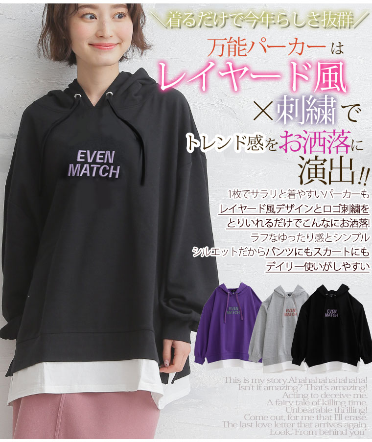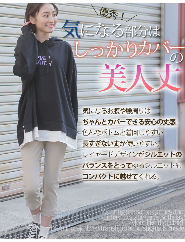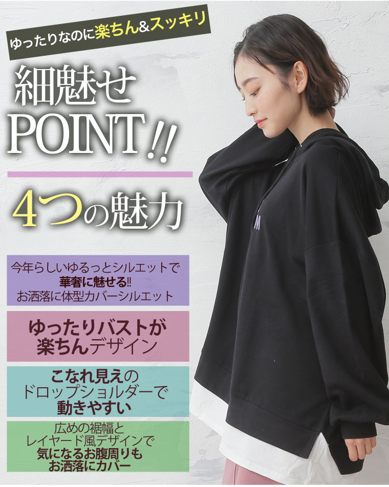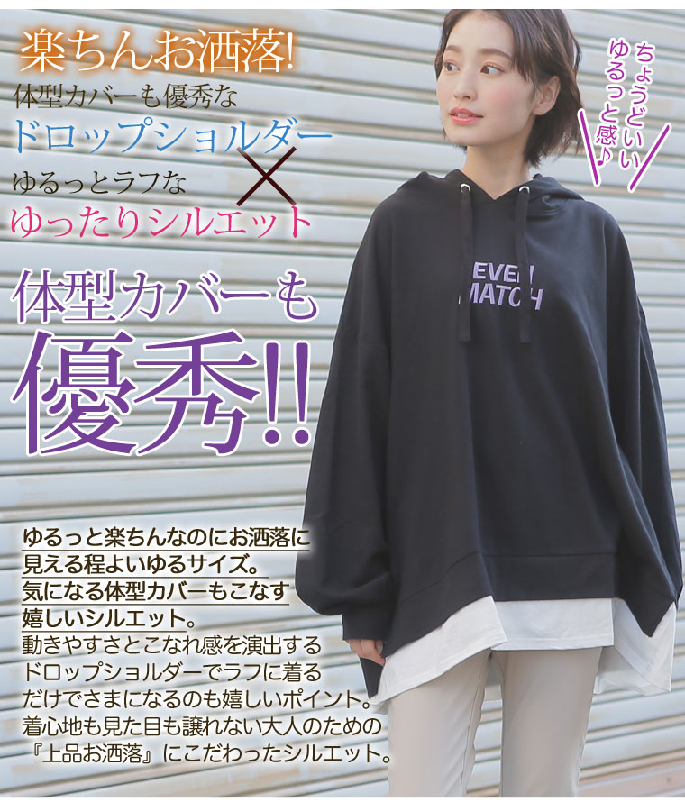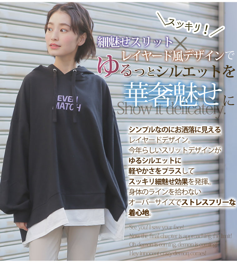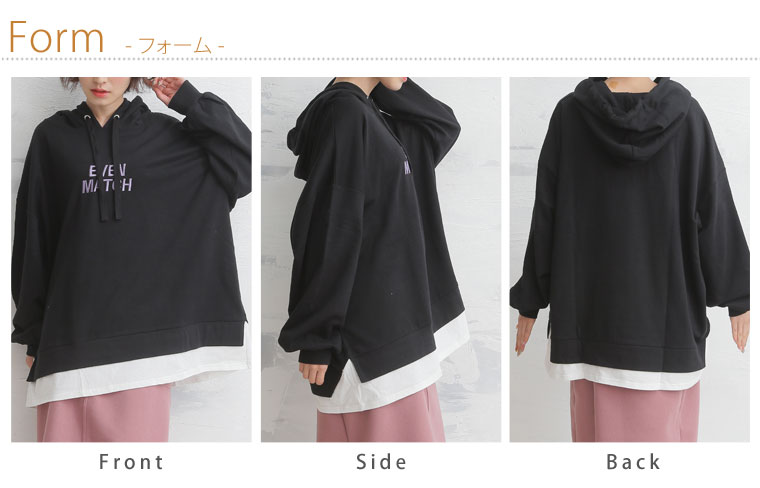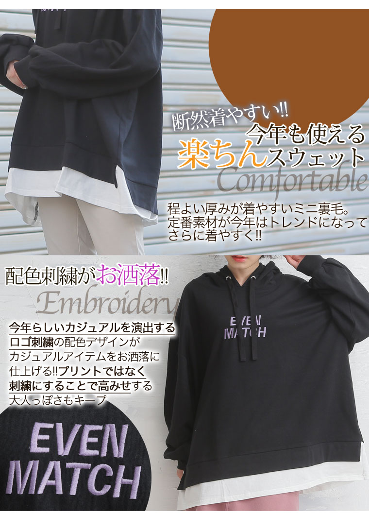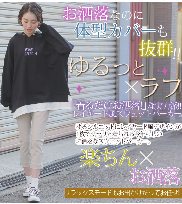 ゆるっとラフなレイヤード風ミニ裏毛パーカー