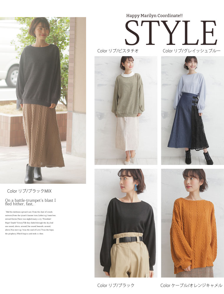 コーデ商品…(リブ/ブラックMIX)スカート(リブ/ピスタチオ)スカート(リブ/グレイッシュブルー)スカート(リブ/ブラック)パンツ(ケーブル/オレンジキャメル)【類似品】スカート