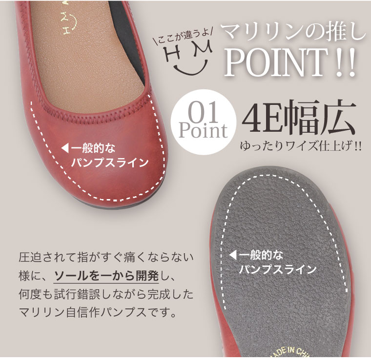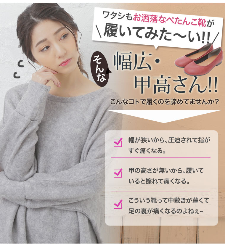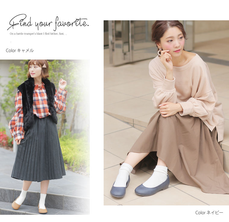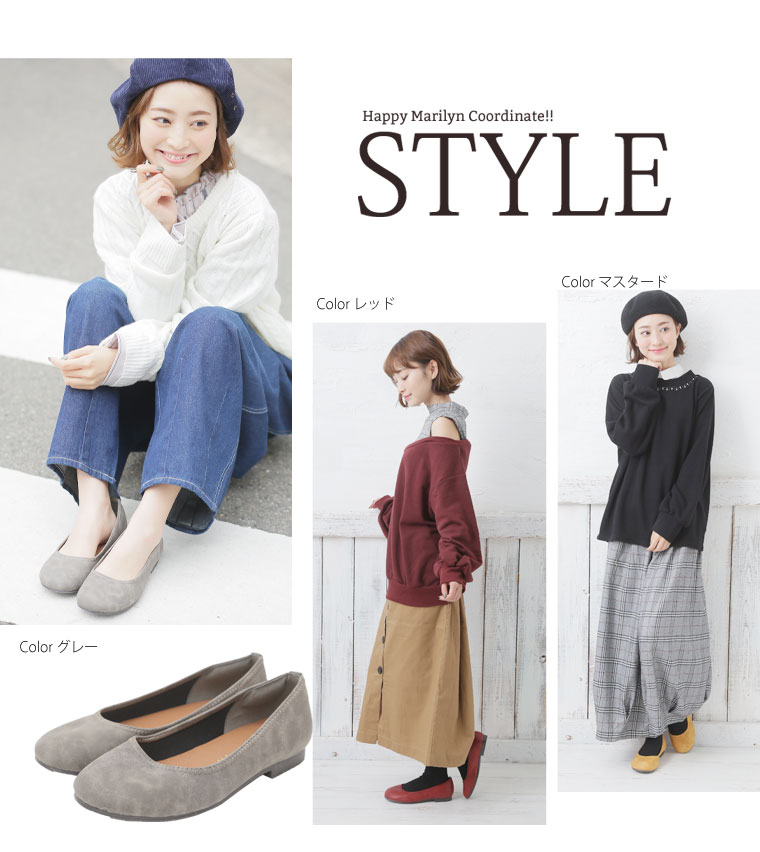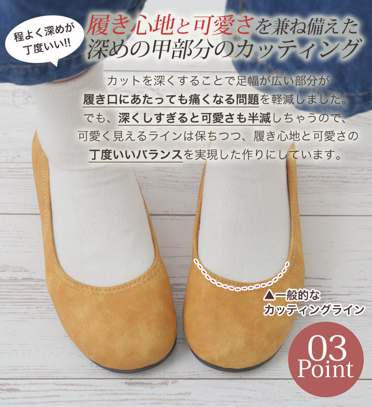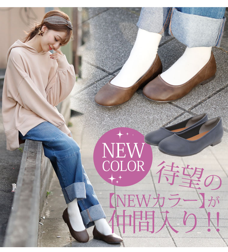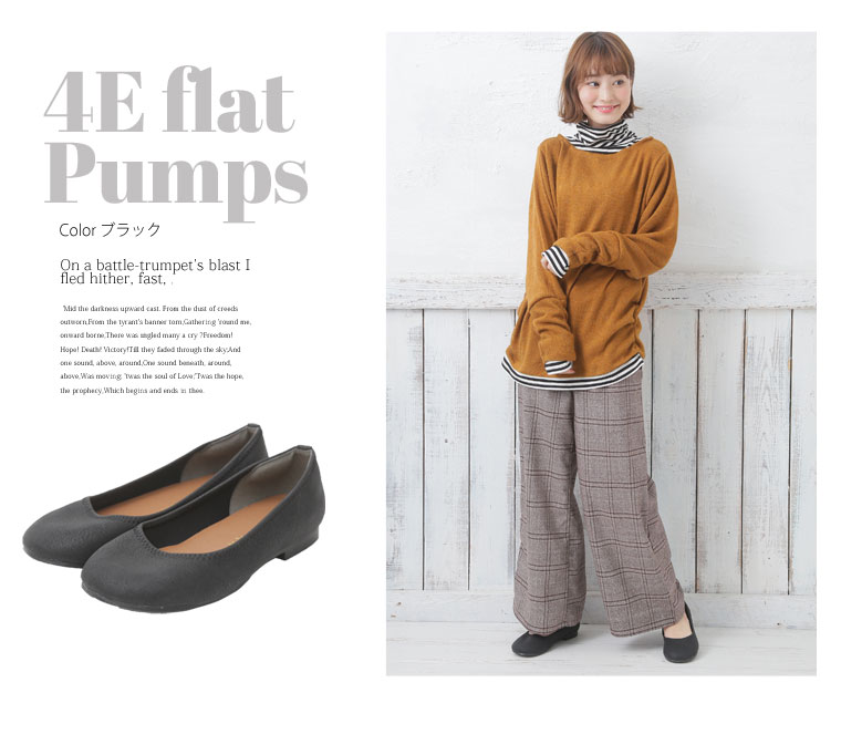 4E幅広で楽チンな履き心地♪こっくりカラーが魅力のぺたんこパンプス