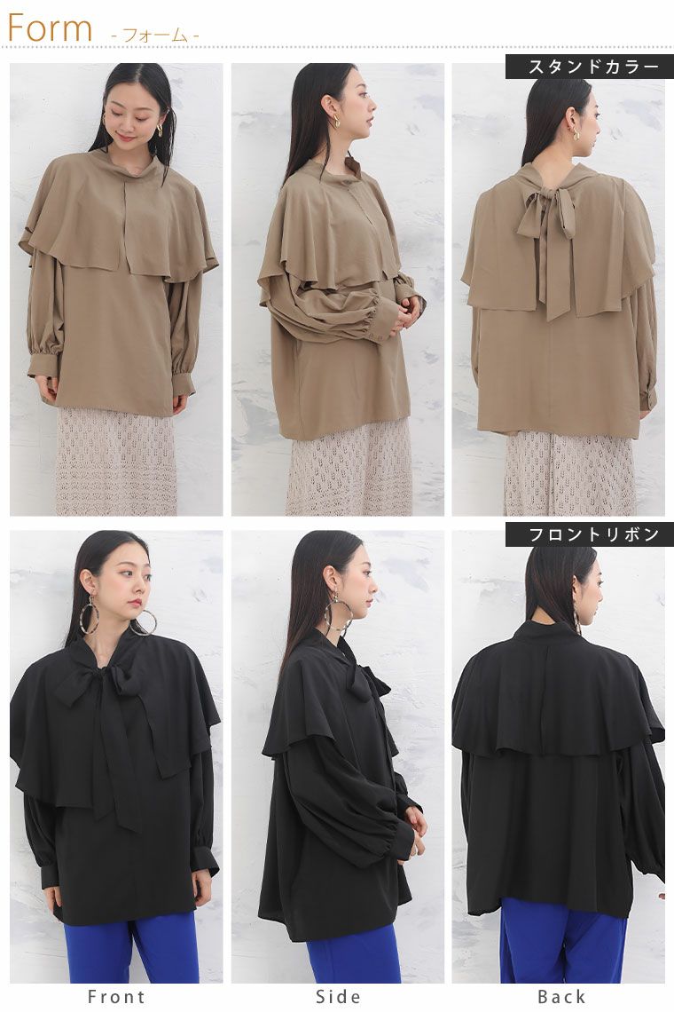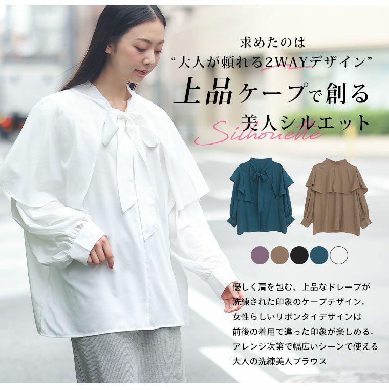 他の画像を見る シャツ トップス LL 3L 4L 秋 秋物 秋冬 ぽっちゃり ゆったり 前後2WAY かわいい おしゃれ カジュアル ナチュラル プラスサイズ 春 【effortless mode】シルキージョーゼット 2way リボン ケープブラウス | 大きいサイズの通販ならハッピーマリリン SALE 定価 ¥ 3,990 のところ 価格 ¥ 2,390 税込 3.67 お気に入りに登録する