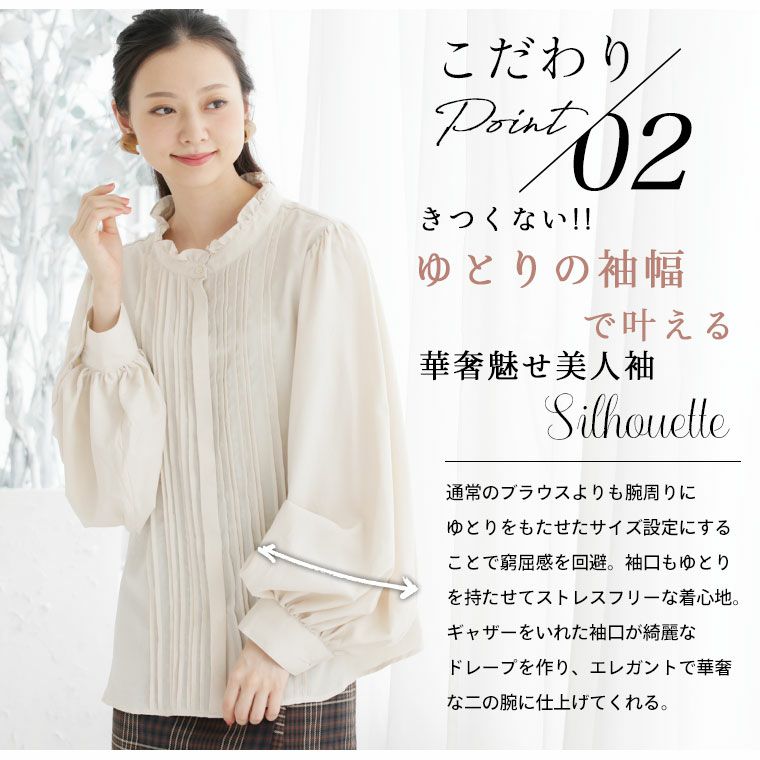 他の画像を見る シャツ トップス LL 3L 4L 春 春物 春服 夏 夏物 夏服 ぽっちゃり ゆったり カジュアル ナチュラル プラスサイズ 【effortless mode】首元苦しくない! 洗練美人袖 シルキージョーゼット プリーツスリーブ ブラウス | 大きいサイズの通販ならハッピーマリリン SALE 定価 ¥ 4,990 のところ 価格 ¥ 4,240 税込 5.00 お気に入りに登録する