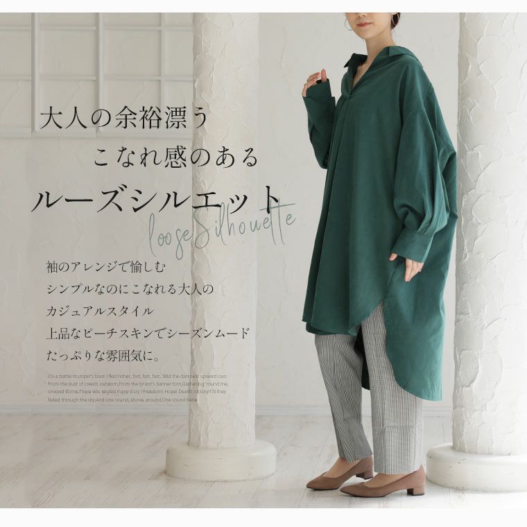 他の画像を見る ブラウス トップス LL 3L 4L 秋 秋物 秋冬 ぽっちゃり ゆったり かわいい おしゃれ カジュアル ナチュラル プラスサイズ 胸周り 春 【effortless mode】大人のこなれ感 TNピーチ起毛 2WAYカフス スキッパー ロングシャツ | 大きいサイズの通販ならハッピーマリリン 価格 ¥ 4,990 税込 4.00 お気に入りに登録する