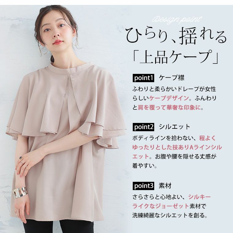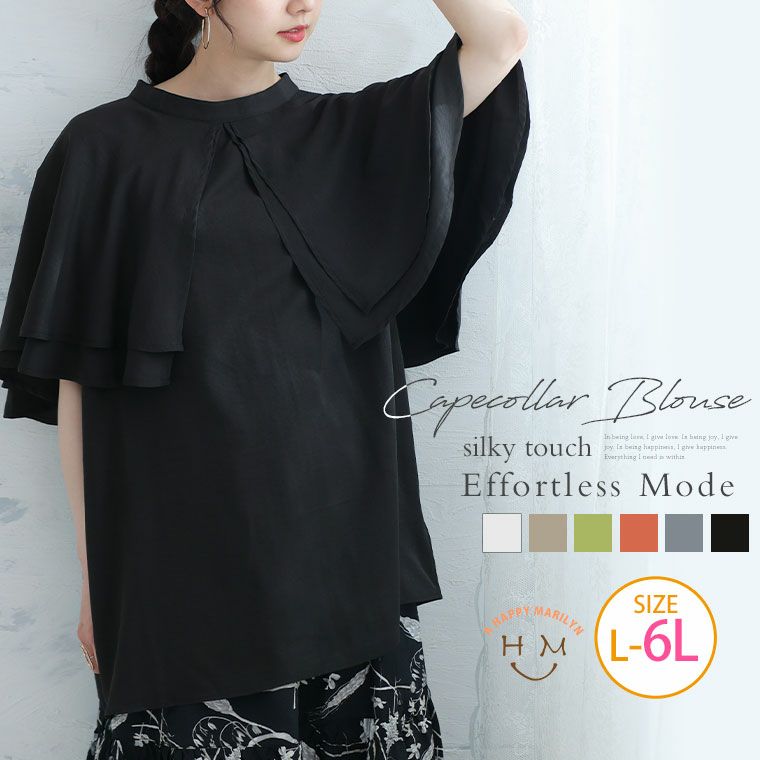 他の画像を見る シャツ トップス LL 3L 4L 5L 6L 夏 夏物 夏服 夏用 ぽっちゃり ゆったり かわいい おしゃれ カジュアル ナチュラル プラスサイズ 【effortless mode】洗練美人 シルキージョーゼット オーバーケープ ブラウス | 大きいサイズの通販ならハッピーマリリン SALE 定価 ¥ 3,990 のところ 価格 ¥ 1,980 税込 3.63 お気に入りに登録する