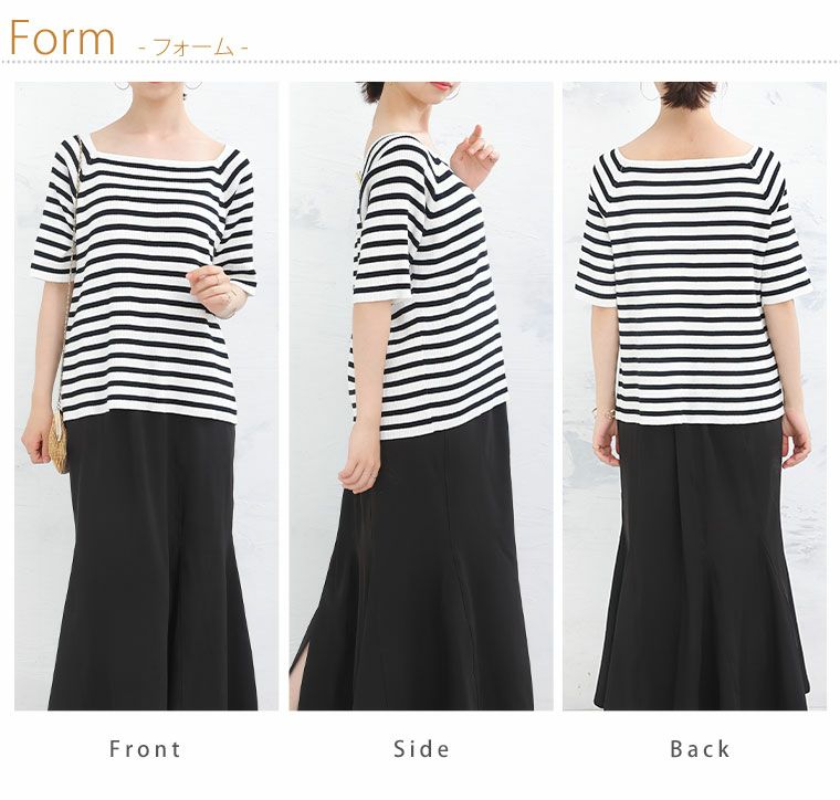 他の画像を見る サマーニット LL 3L 4L 夏 夏物 夏服 夏用 ぽっちゃり ゆったり おしゃれ カジュアル ナチュラル プラスサイズ 【effortless mode】 スッキリ美人シルエット スクエアネック ボーダー ニット プルオーバー | 大きいサイズの通販ならハッピーマリリン 価格 ¥ 2,990 税込 5.00 お気に入りに登録する