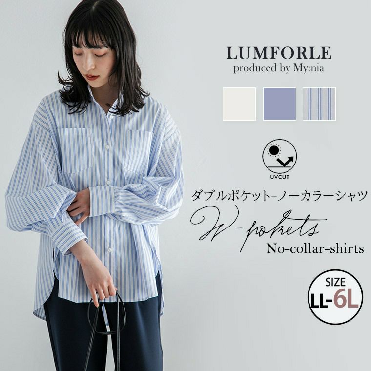 大きいサイズ 【LUMFORLE produced by My:nia】イージーケア・UVカット ダブルポケット ノーカラー ストレッチ シャツ | 大きいサイズの通販ならハッピーマリリン