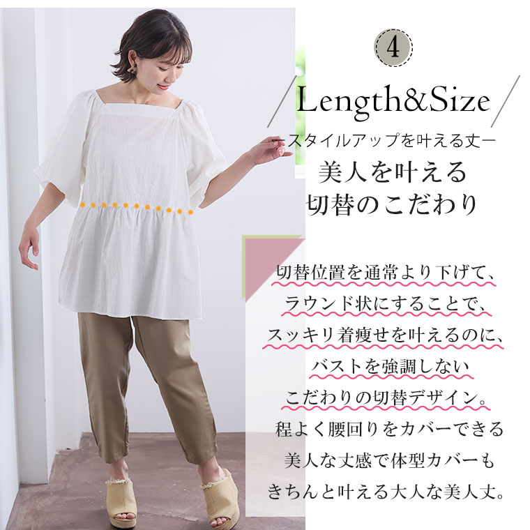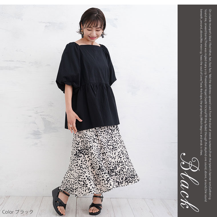 腰周りもカバーする、ふんわりペプラムデザイン。