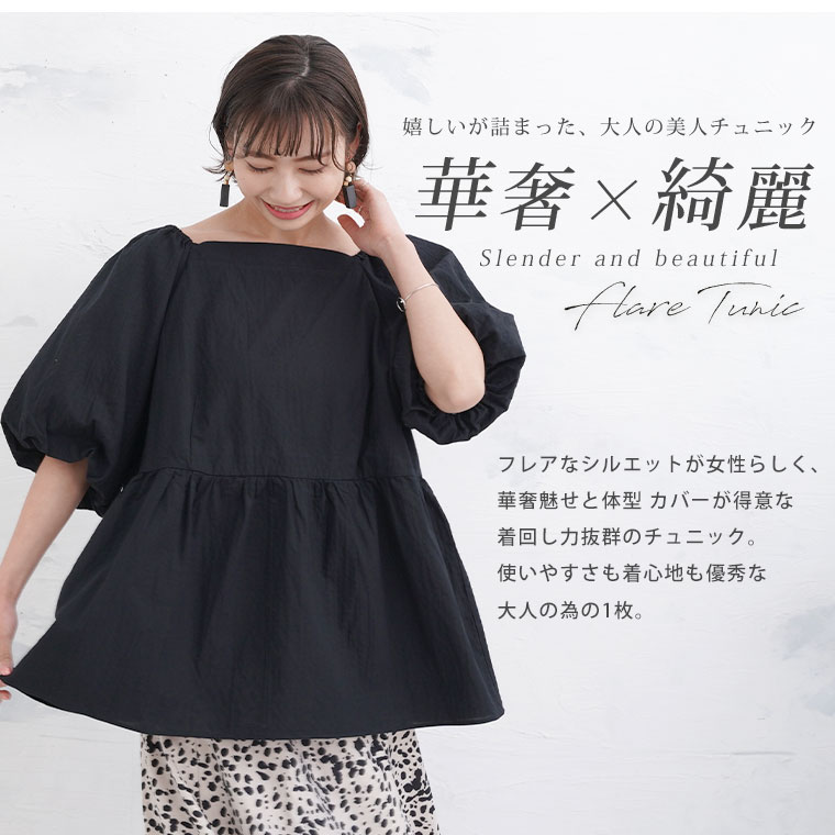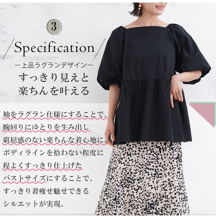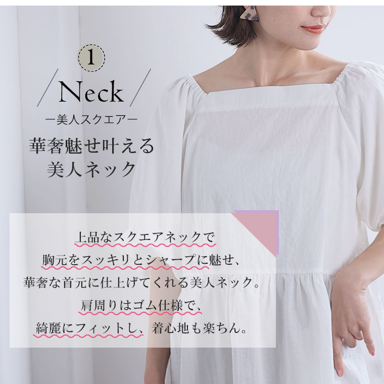 こだわりのバルーン袖とスクエアネックで華奢魅せ。