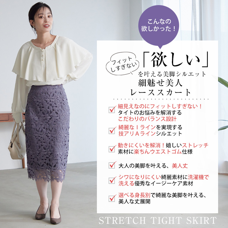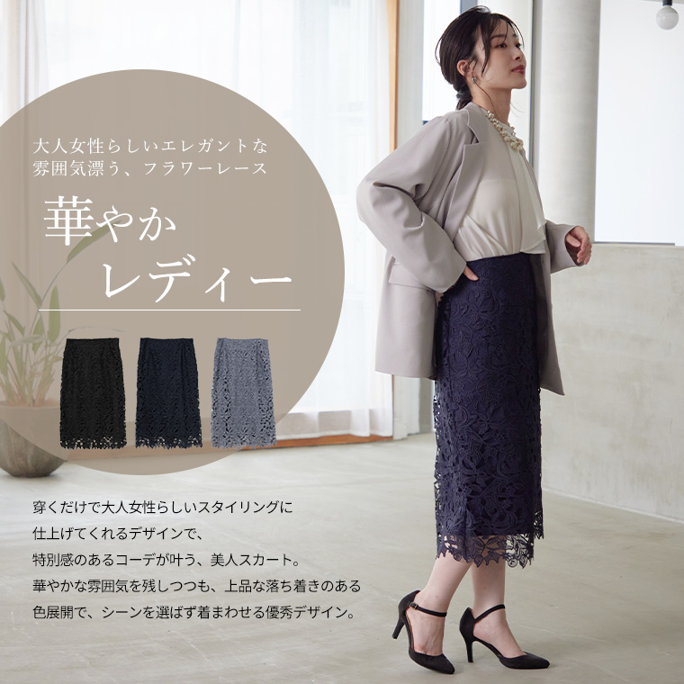 フィットしすぎないのに細魅せ美人!華やぎ レーススカート