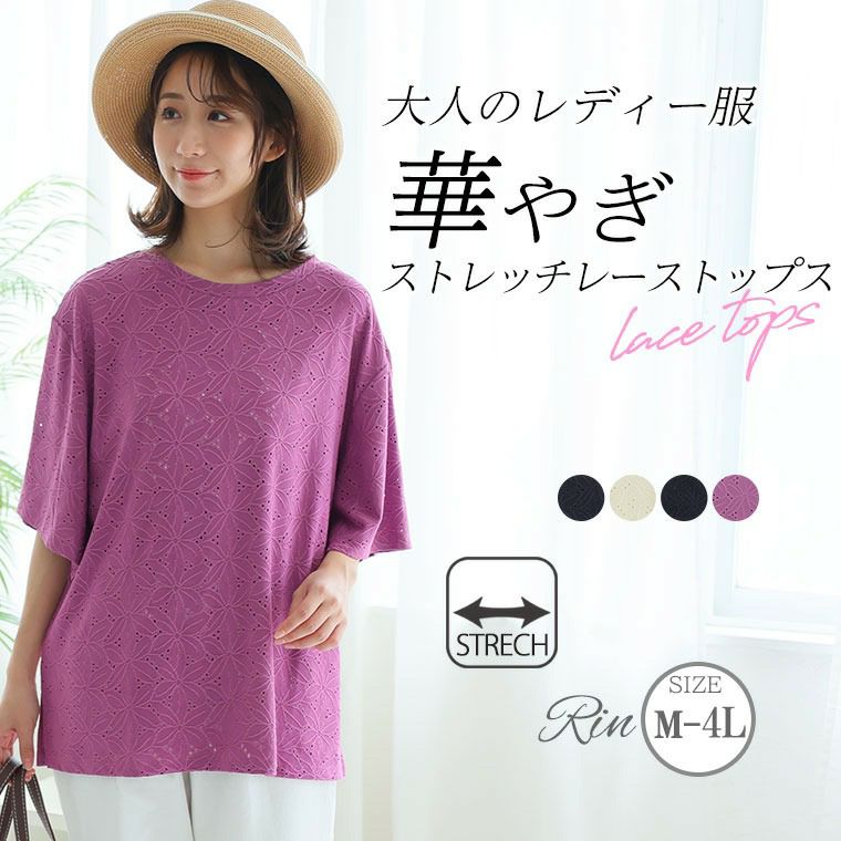 大人のレディー服、華やぎストレッチレーストップス