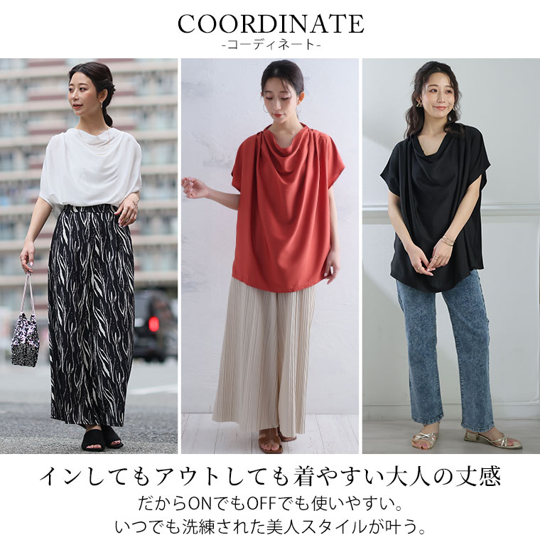 ドレープが好きで色違いを買いましたが気に入ったので黒も買うことにしました。エレガントですよ。シワになりにくいのもポイント高いです
