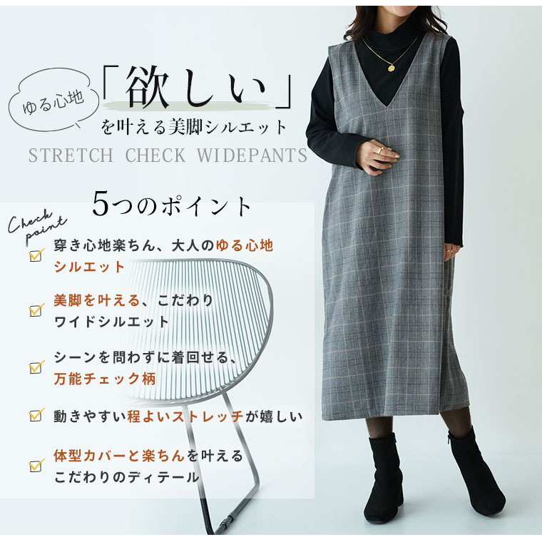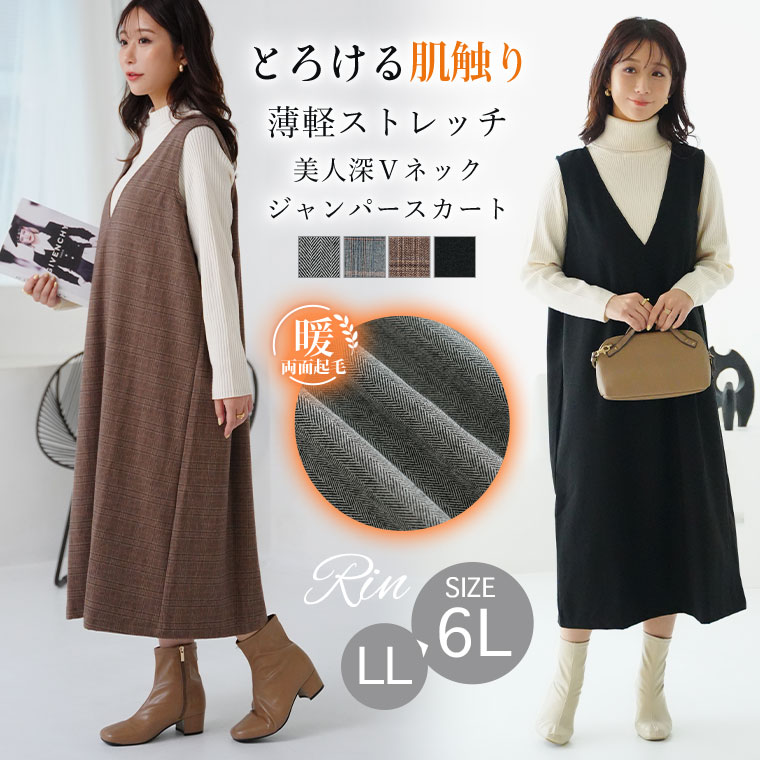 ジャンパースカート LL 3L 4L 5L 6L 冬 冬物 冬服 ぽっちゃり ゆったり Rin 重ね着しやすい! 薄くてあったか とろける肌触り メルティ ストレッチ 美人 Vネック チェック ジャンスカ