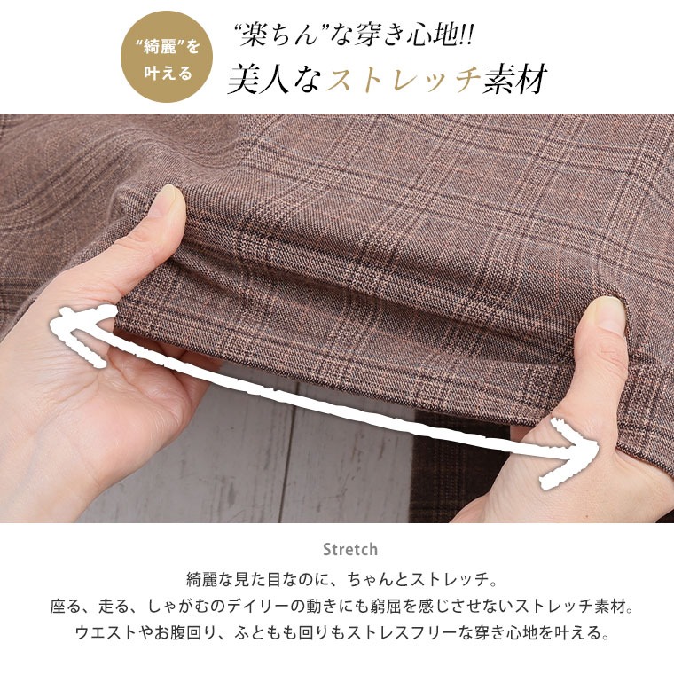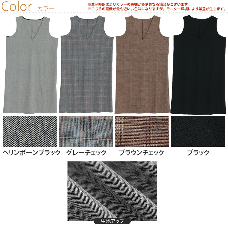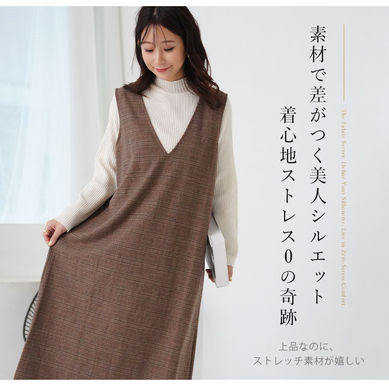 4. 大きいサイズ Rin 重ね着しやすい! 薄くてあったか とろける肌触り メルティ ストレッチ 美人 Vネック チェック ジャンスカ