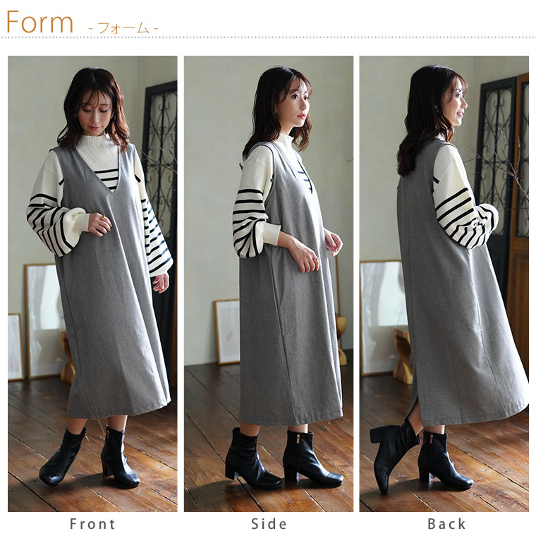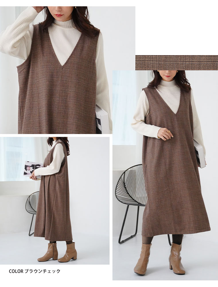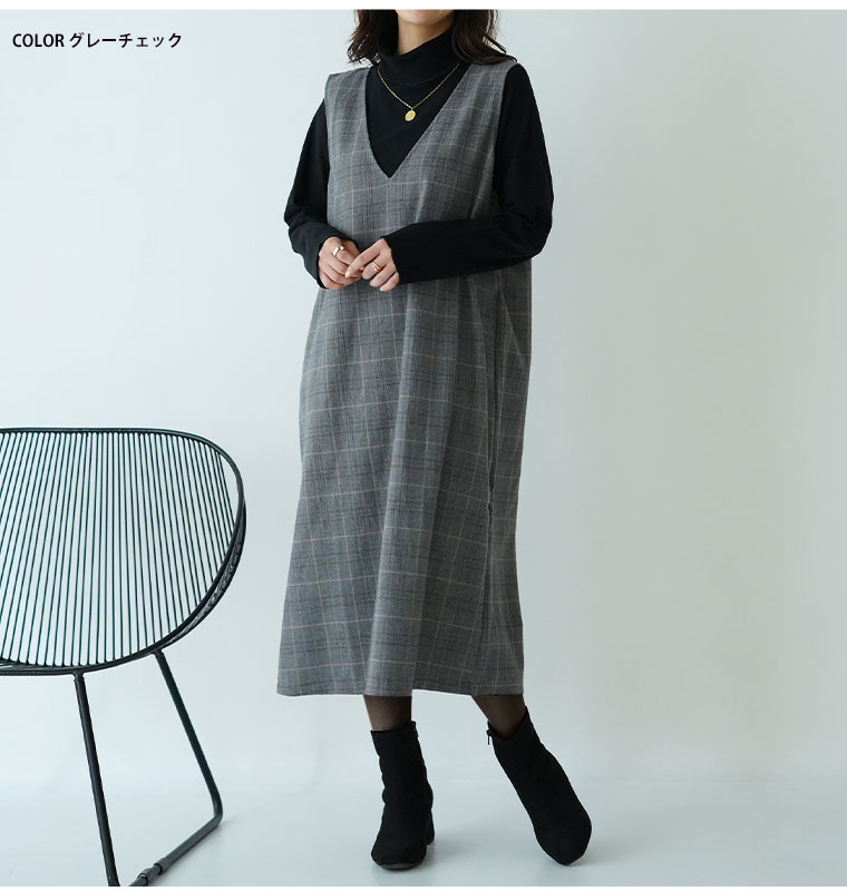 【Rin】薄くてあったか Vネックチェックジャンスカ