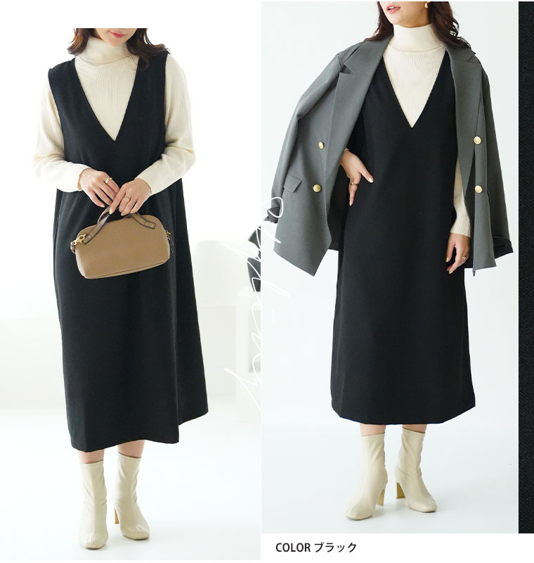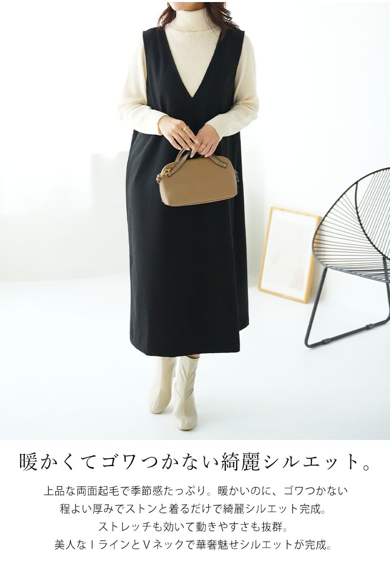3. 大きいサイズ Rin 重ね着しやすい! 薄くてあったか とろける肌触り メルティ ストレッチ 美人 Vネック チェック ジャンスカ