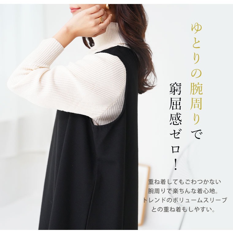 ■着用感:ちょうどいい、■着丈:ふくらはぎ下、■バスト:ちょうどいい、■腕回り:ちょうどいい、■袖口:ちょうどいい、■袖丈:-、首回りちょうどいい、■ウエスト:-、■ヒップ:-、■太もも:- ●スッキリと見え体型カバーができました。