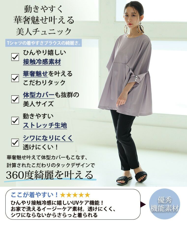 他の画像を見る オリジナル LL 3L 4L 5L 6L 夏 夏物 夏服 夏用 ぽっちゃり 接触冷感 イージーケア 吸水速乾 uv Rin ブラウスの綺麗さ T シャツの着やすさ!ひんやり シワになりにくい 華奢魅せ美人 タック チュニック | 大きいサイズの通販ならハッピーマリリン 価格 ¥ 2,790 税込 4.14 在庫切れ お気に入りに登録する