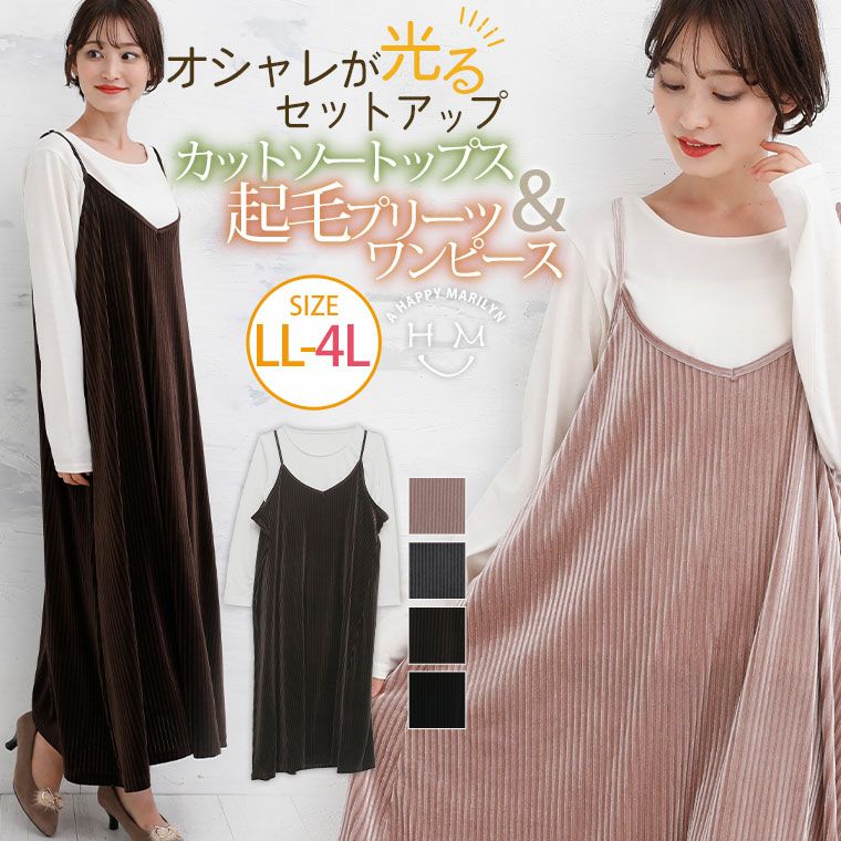 他の画像を見る set Tシャツ キャミワンピ LL 3L 4L 秋 秋物 秋服 冬 冬物 冬服 ぽっちゃり ゆったり お腹 太もも 胸周り お尻 腰周り カットソー トップス & 起毛プリーツ ワンピ セットアップ | 大きいサイズの通販ならハッピーマリリン 価格 ¥ 2,990 税込 4.50 在庫切れ お気に入りに登録する