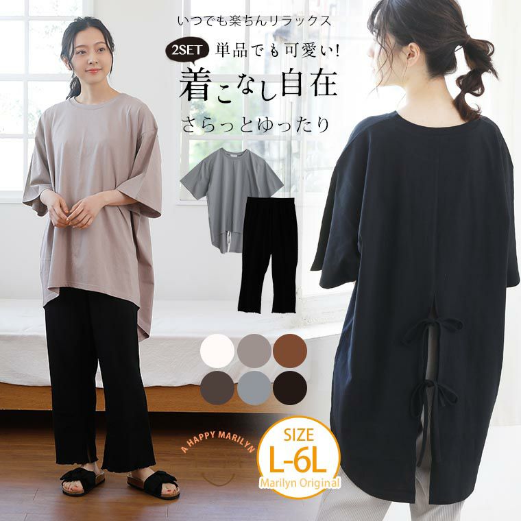 他の画像を見る 上下セット トップス パンツ LL 3L 4L 5L 6L 夏 夏物 夏服 夏用 ぽっちゃり ゆったり お腹 太もも 胸周り 半袖 いつでも楽ちんリラックス! バックリボン Tシャツ & 細魅せ リブパンツ セットアップ | 大きいサイズの通販ならハッピーマリリン 価格 ¥ 3,490 税込 4.63 在庫切れ お気に入りに登録する