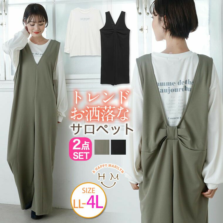 トレンドお洒落なサロペット&長袖ロゴTシャツ