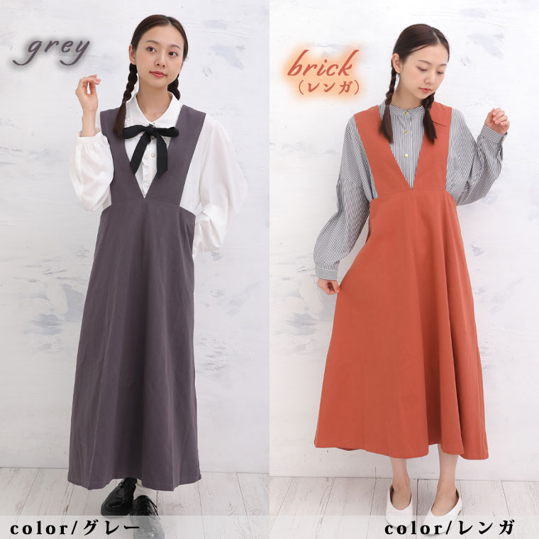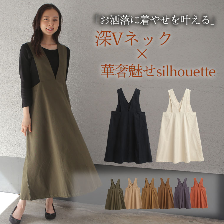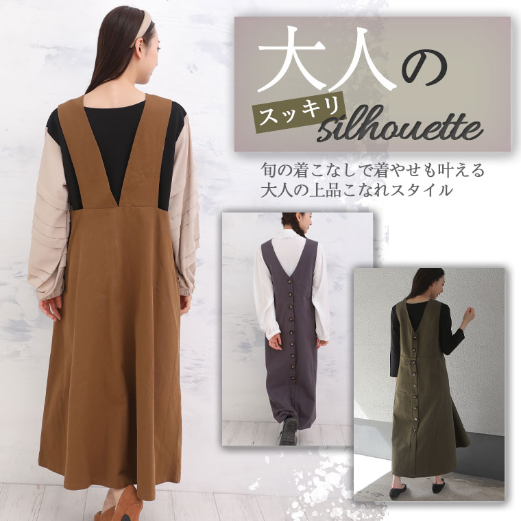 オリジナル スカート ジャンパースカート ワンピース LL 3L 4L 5L 6L 7L 8L 秋 秋物 秋冬 ゆったり お腹 お尻 腰周り 綿100% 前後2way 着回し美人な コットン こなれ ジャンスカ