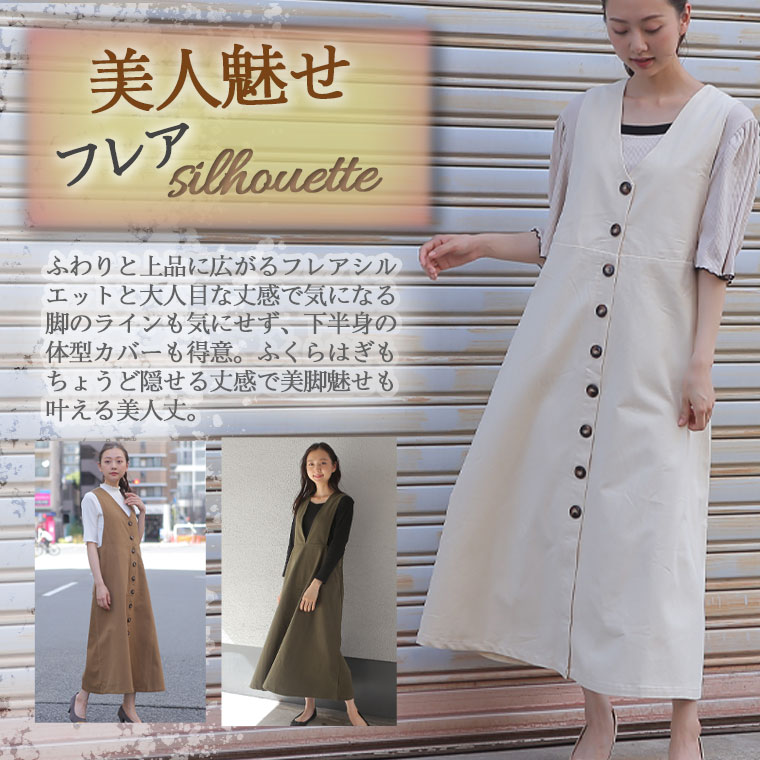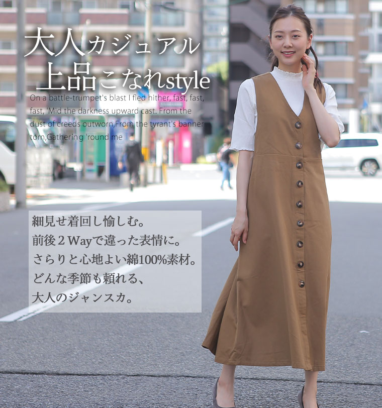 5. 大きいサイズ 綿100% 前後2way 着回し美人な コットン こなれ ジャンスカ