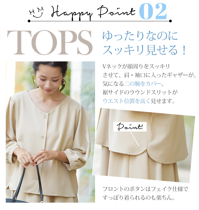 ゆったりなのにスッキリ見せるカットジョーゼット素材