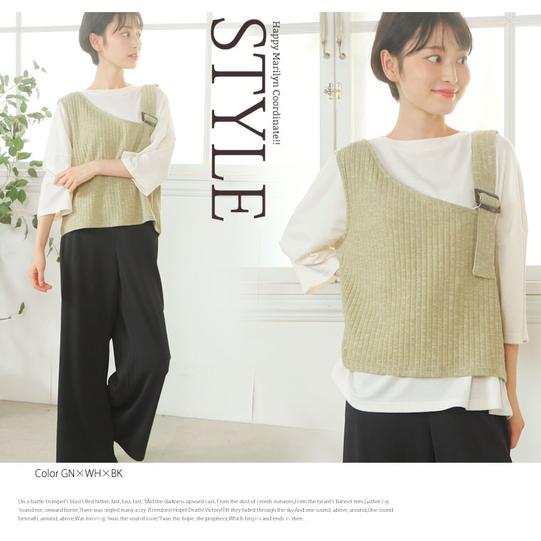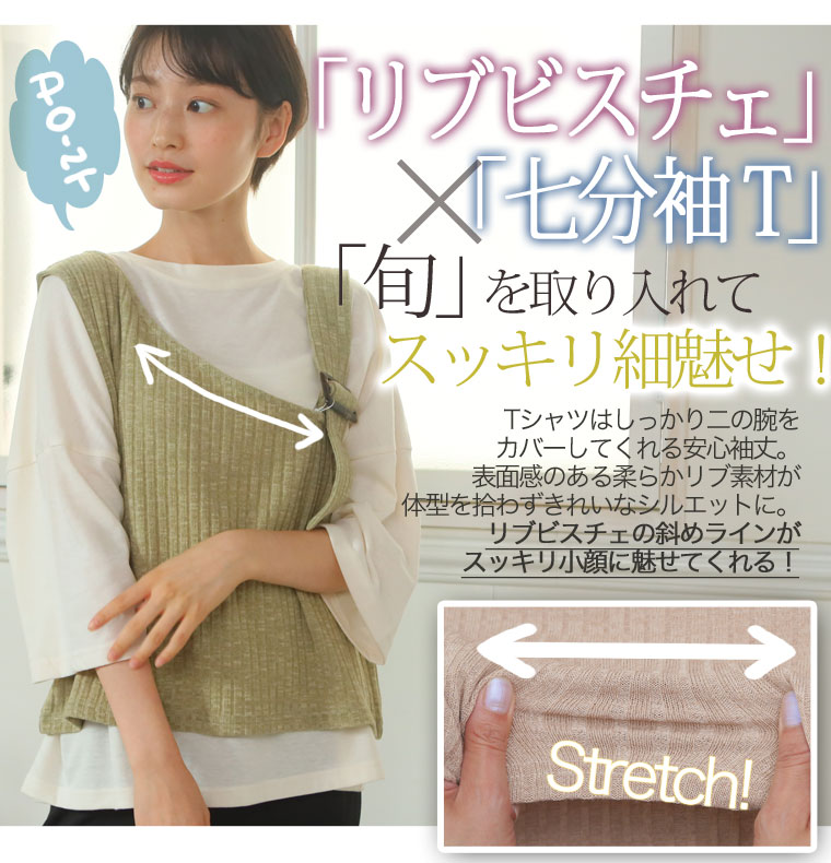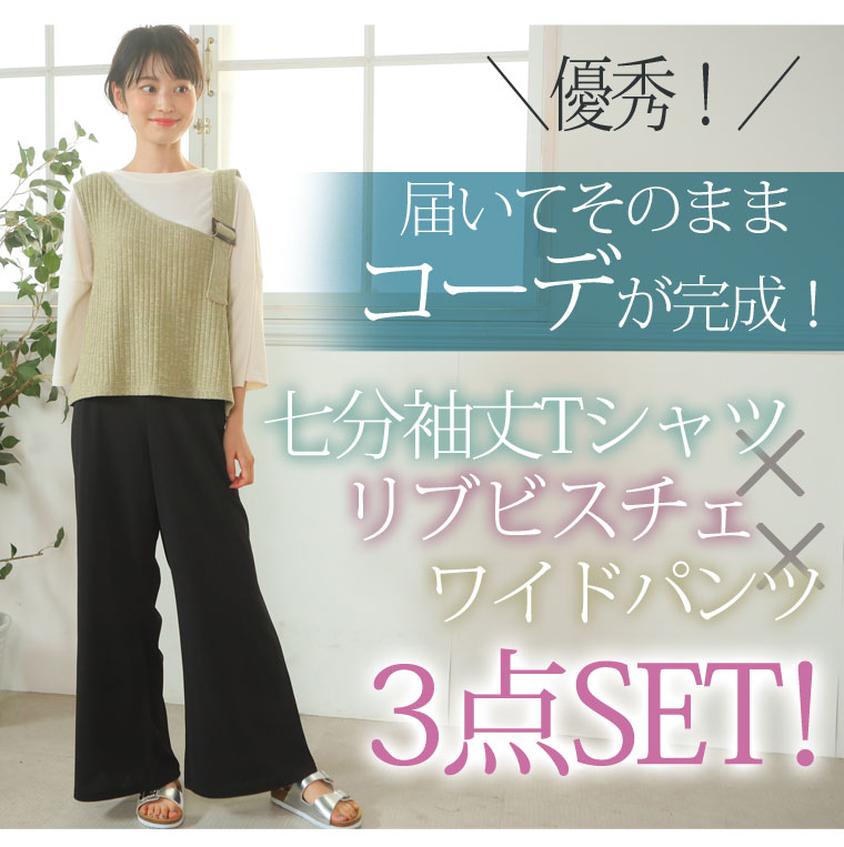 3点セット 楽ちん!簡単コーデのスタイル美人 リブビスチェセットアップ
