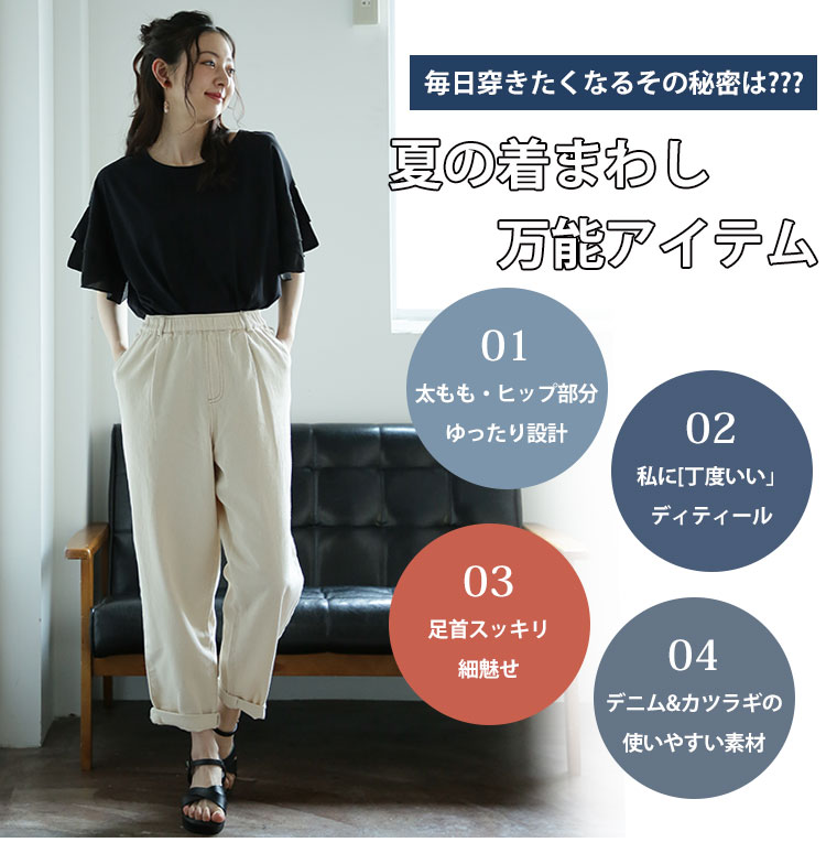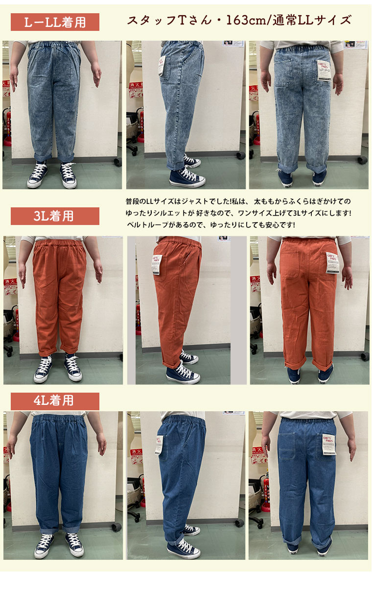 ボトムス テーパード LL 3L 4L 夏 夏物 夏服 夏用 ぽっちゃり ゆったり お腹 太もも お尻 腰周り イージーパンツ サルエルパンツ カーゴパンツ デニム カラーパンツ 【ウェストゴム】 毎日はきたい! 楽々すらり シェフパンツ