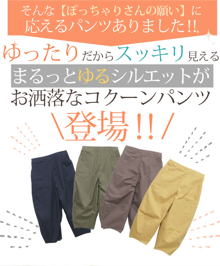 大きいサイズ 綿100% ぽっちゃりさん御用達!! ゆったりだからすっきり見えるころんとかわいい コットン コクーンパンツ
