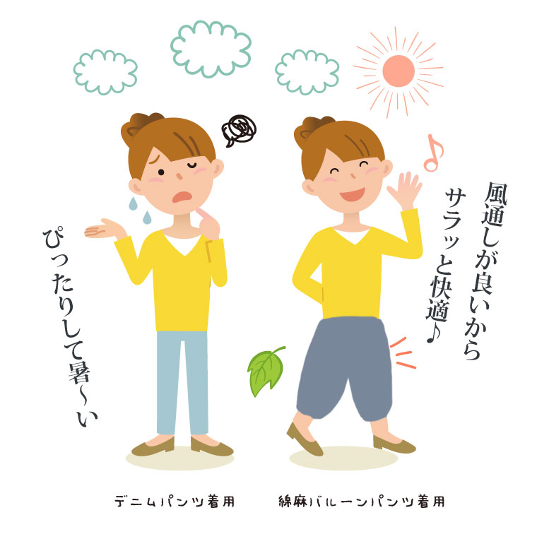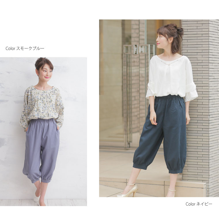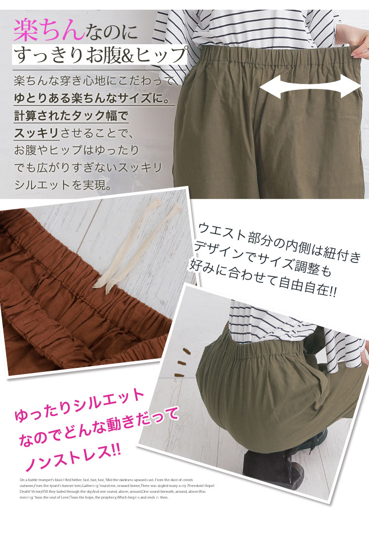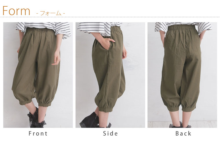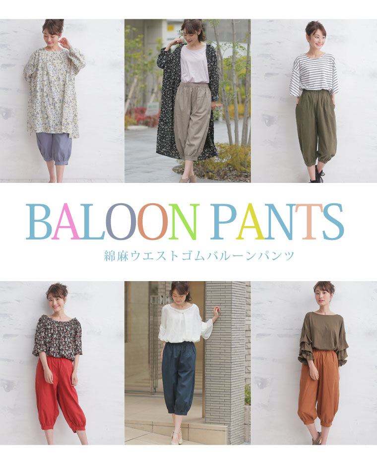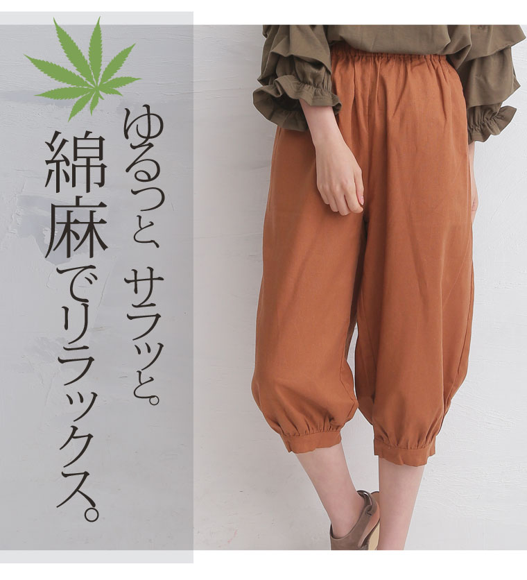 綿麻生地でナチュラルな生地感でお洒落に着こなすウエストゴムバルーンパンツ