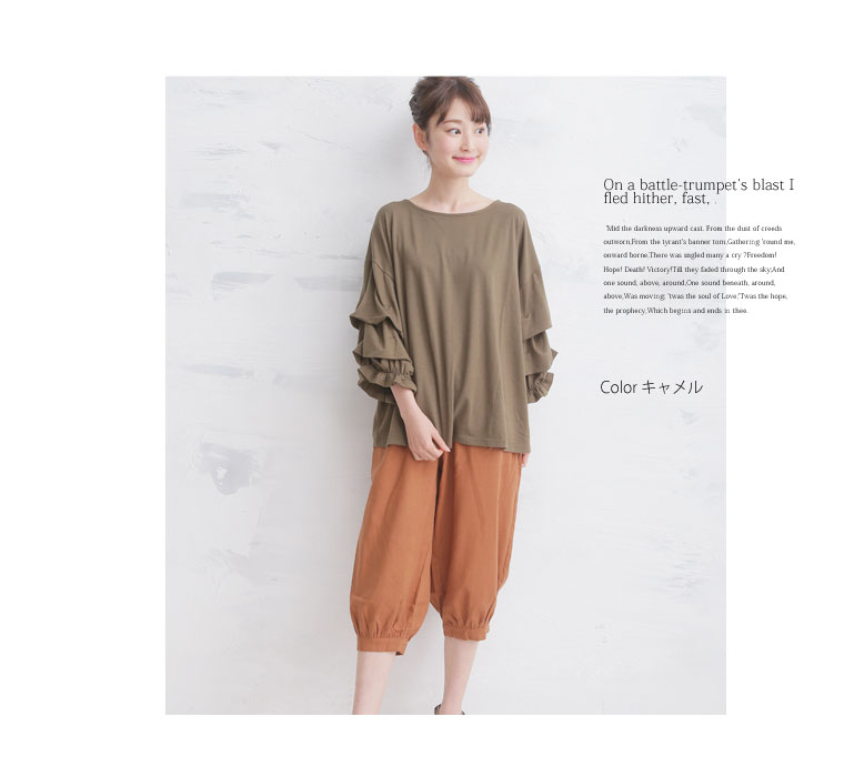 ほっこりカラーで大人スタイルの完成。サラリとした生地感で暑い季節も快適に