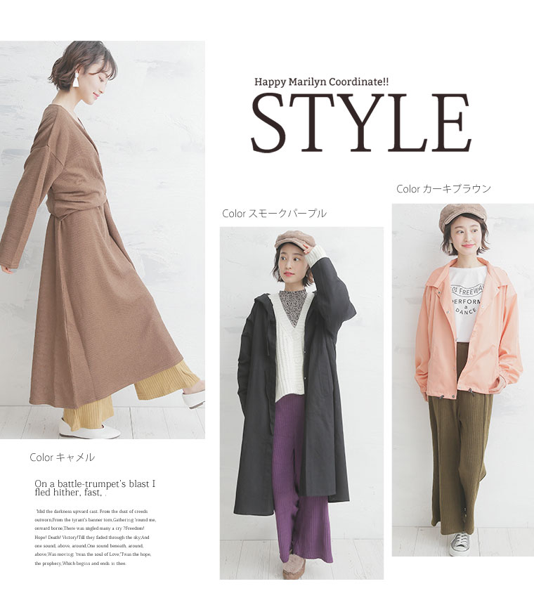 コーデ商品…(キャメル)ワンピース(スモークパープル)コート/【類似品】トップス/【類似品】カーデ(カーキブラウン)シャツ/【類似品】トップス