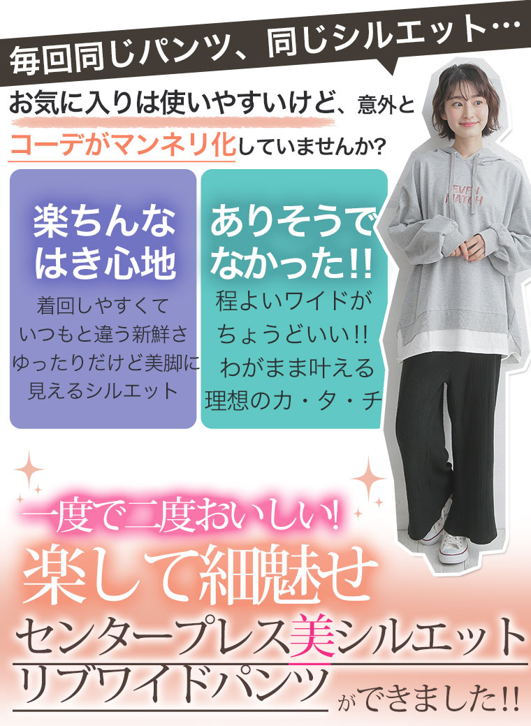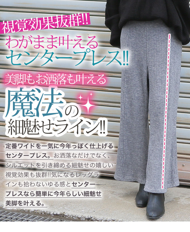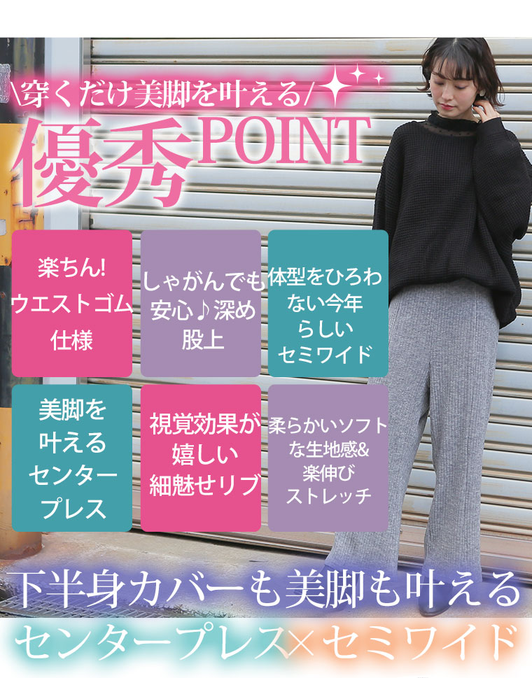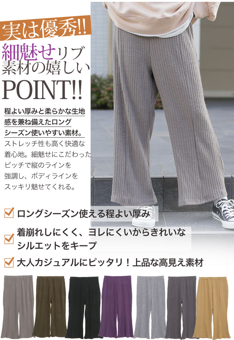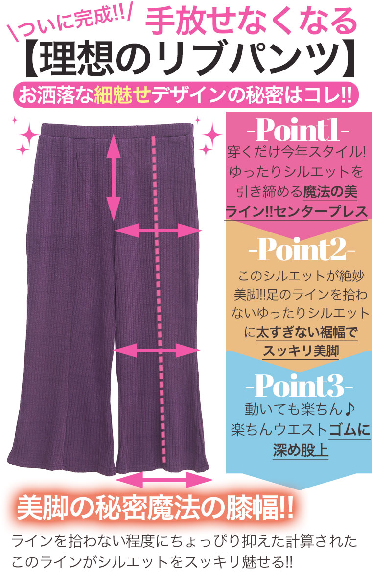 スッキリ縦長ラインで大人っぽく着こなす!!美シルエットセンタープレスリブパンツ