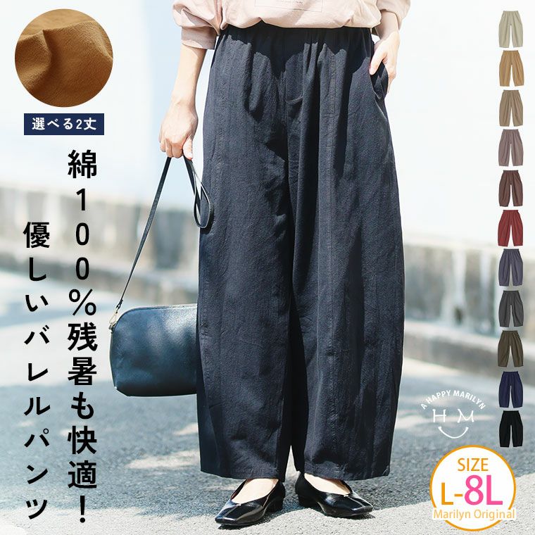ボトムス LL 3L 4L 5L 6L 7L 8L 秋 秋物 秋服 冬 冬物 冬服 ぽっちゃり ゆったり お尻 暑い秋に最適! 綿100% さらっと優しいコットン バレルレッグパンツ カーブパンツ 選べる2丈【ウェストゴム】 | 大きいサイズの通販ならハッピーマリリン