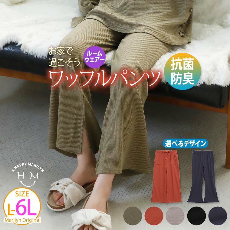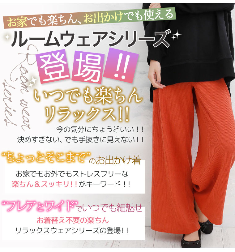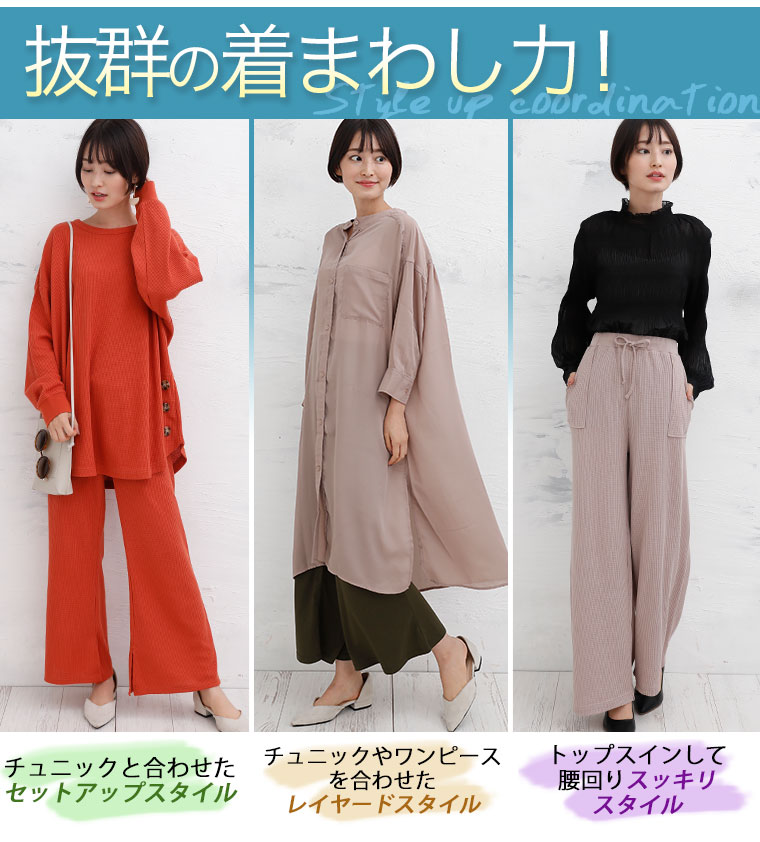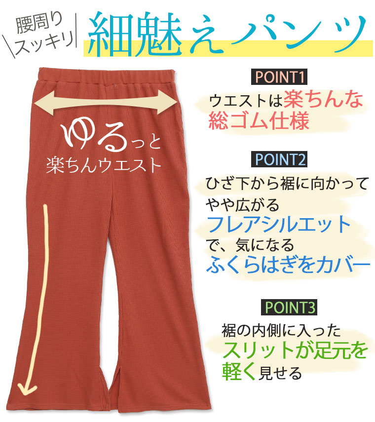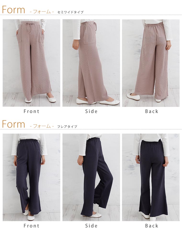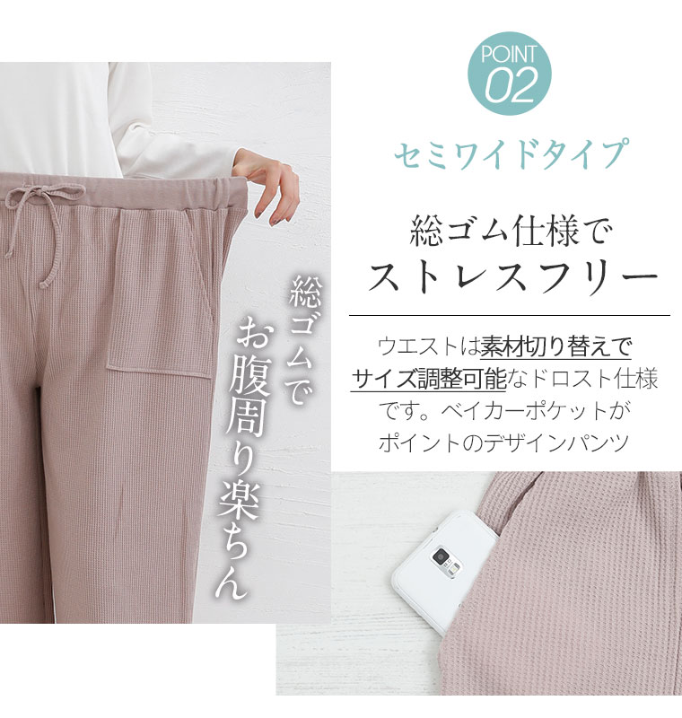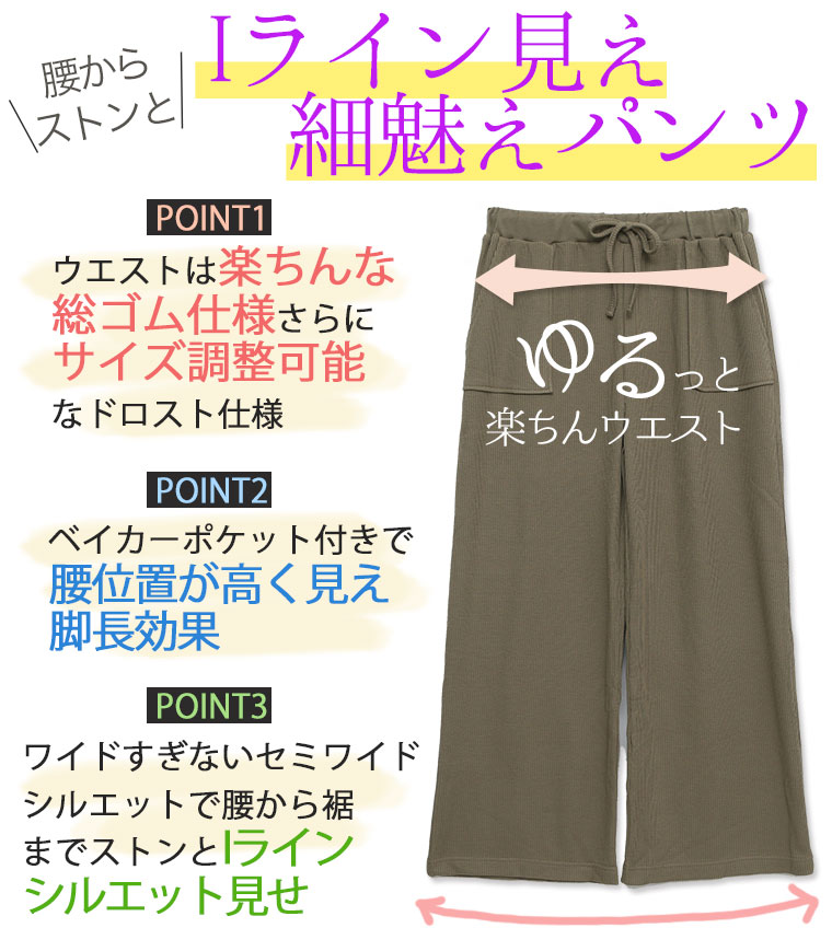楽ちん華奢美人シンプルワッフルパンツ!スッキリラインが嬉しいIライン