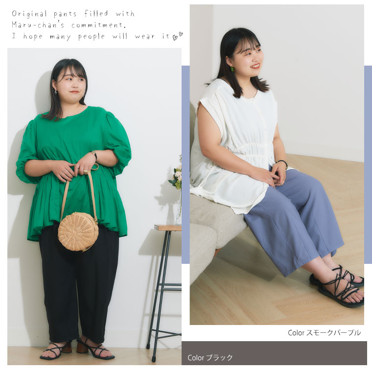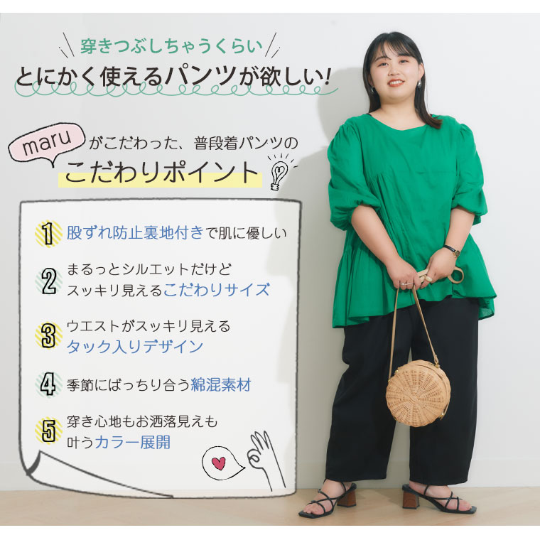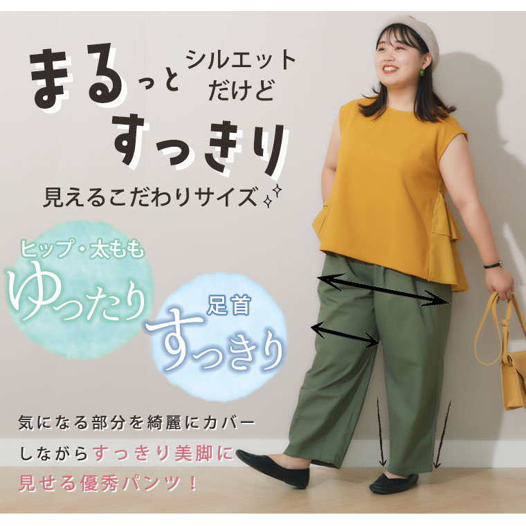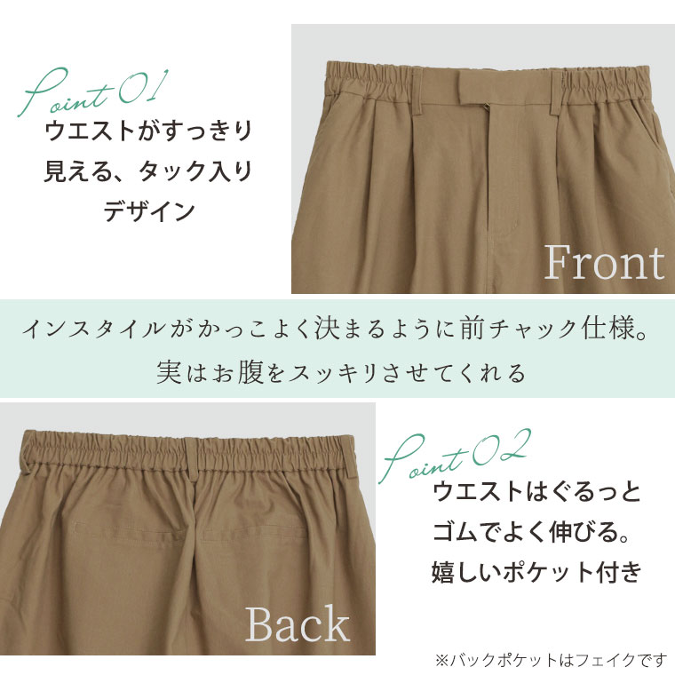 ゆったりな着心地だけどウエストデザインとタック効果でお腹周りスッキリ見えパンツ♪