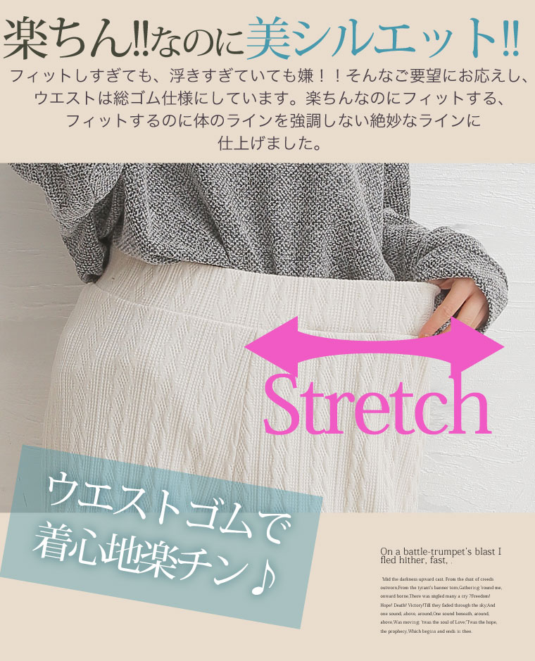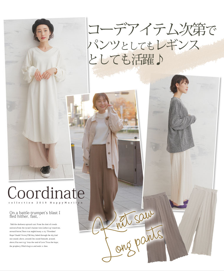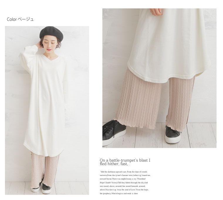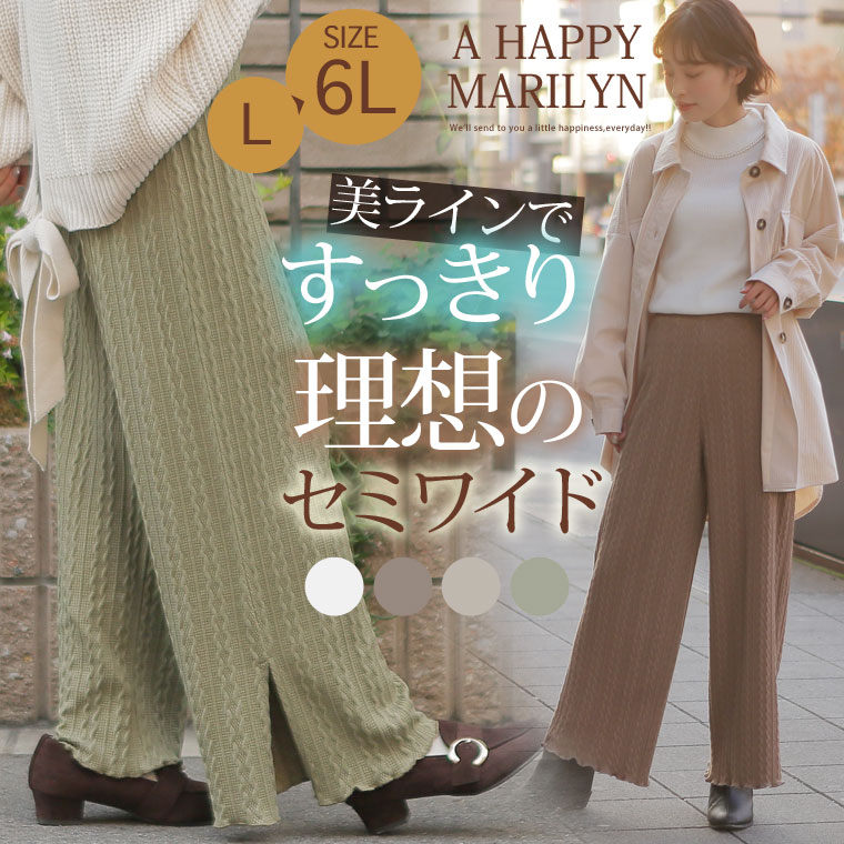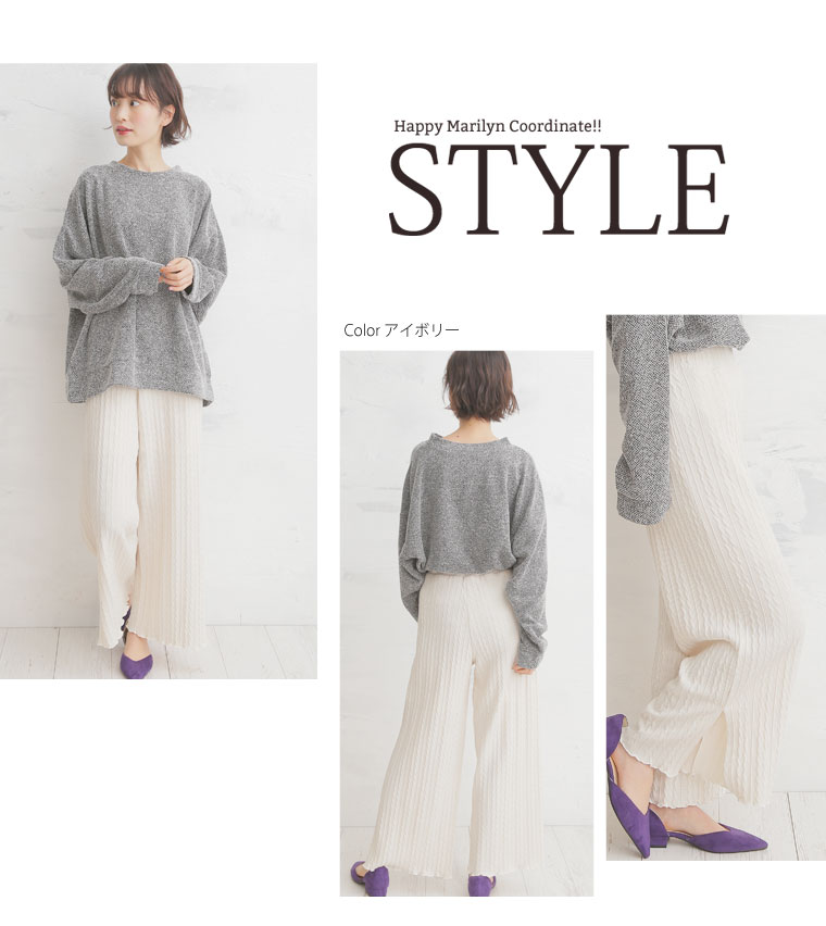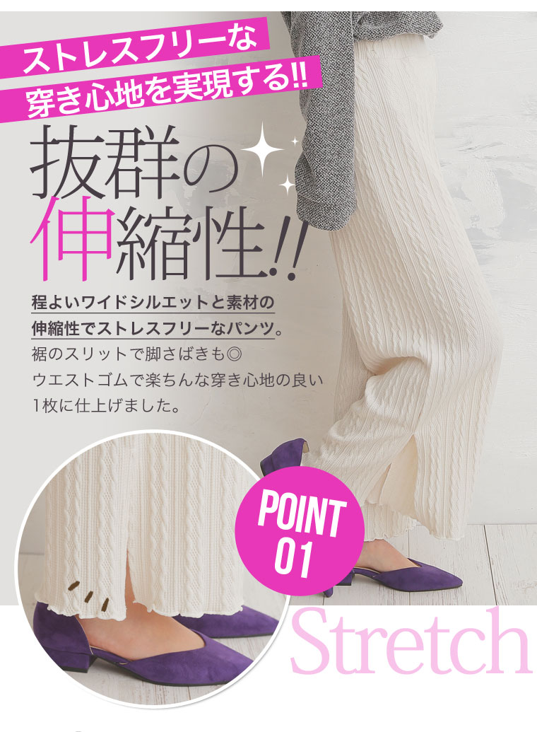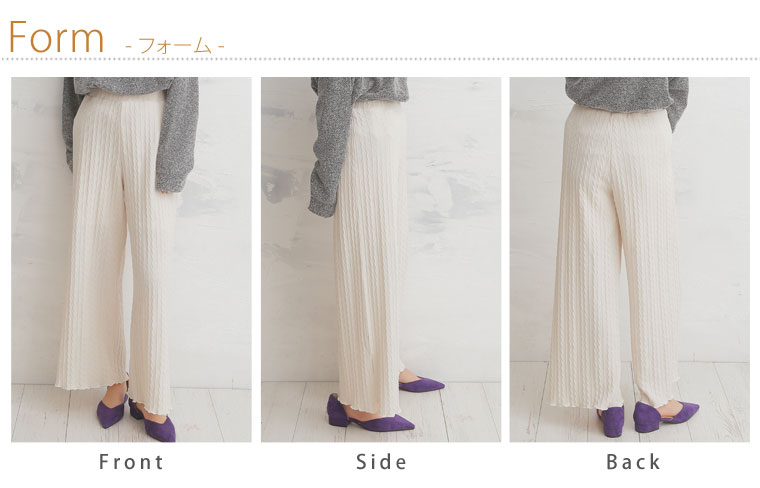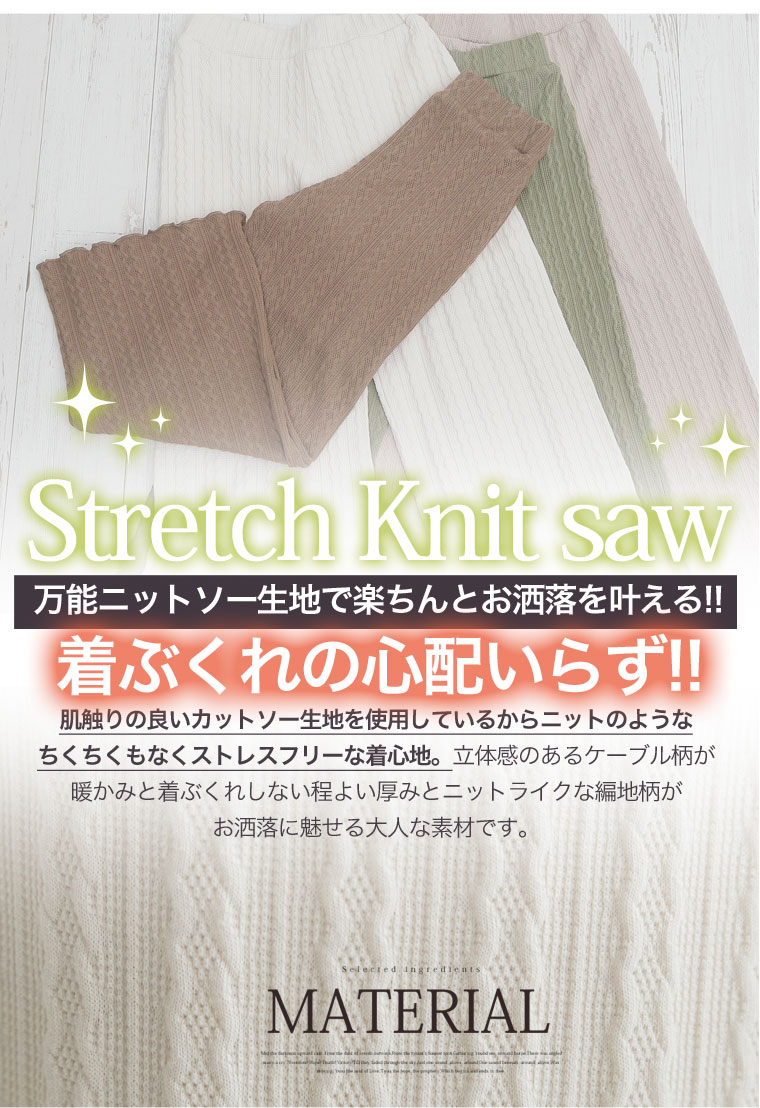 柔らかケーブルデザインですっきり美脚。ニットソーロングパンツ
