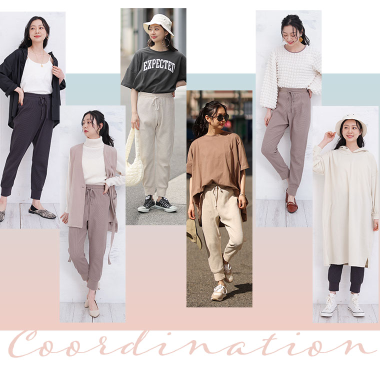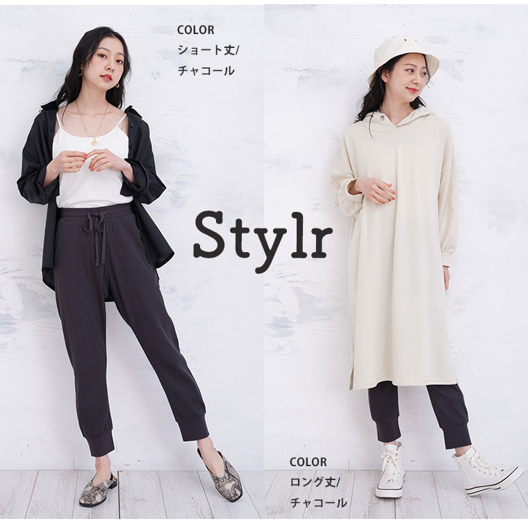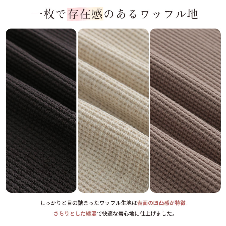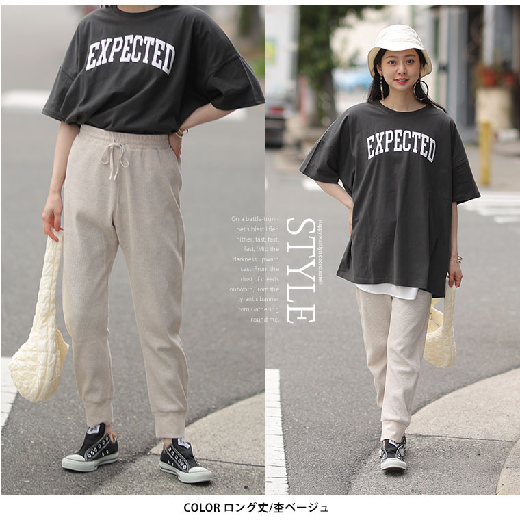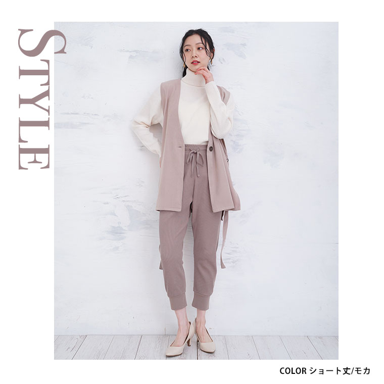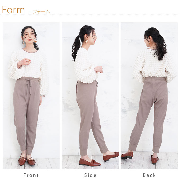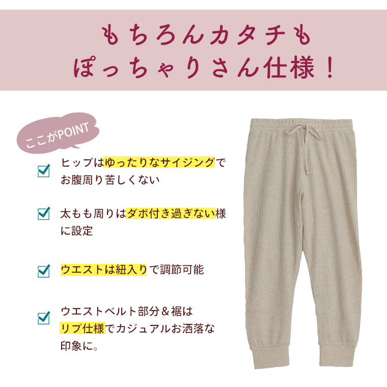 ショート丈とロング丈から選べる混綿ワッフル素材の楽ちんパンツ