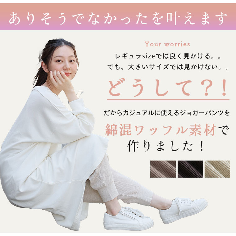 ぽっちゃりさんのために作った綿混ワッフル素材のジョガーパンツ