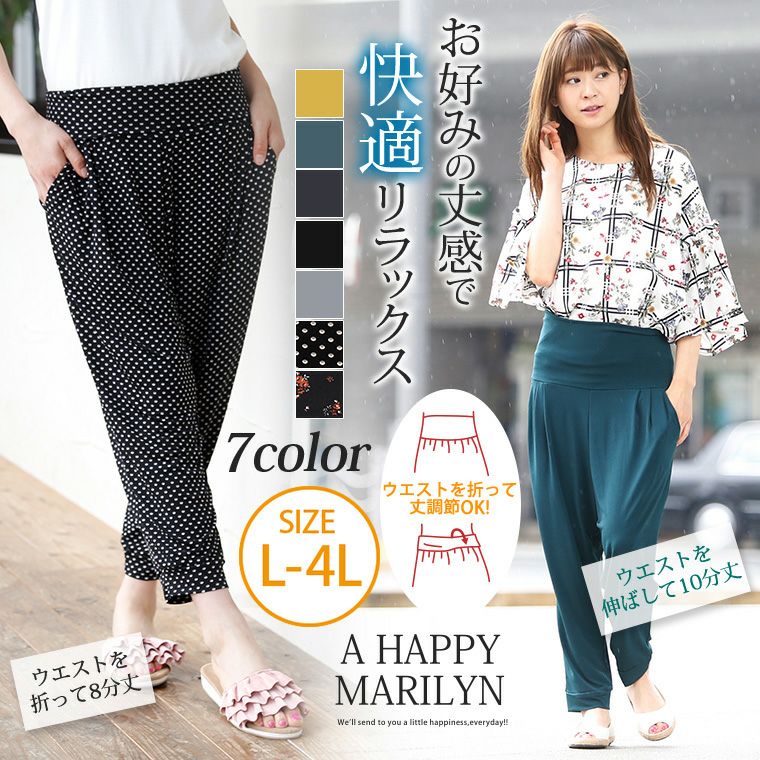ラップウエストで楽ちん♪ゆったりした穿き心地のサルエルパンツ
