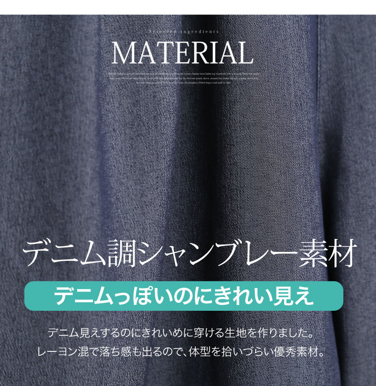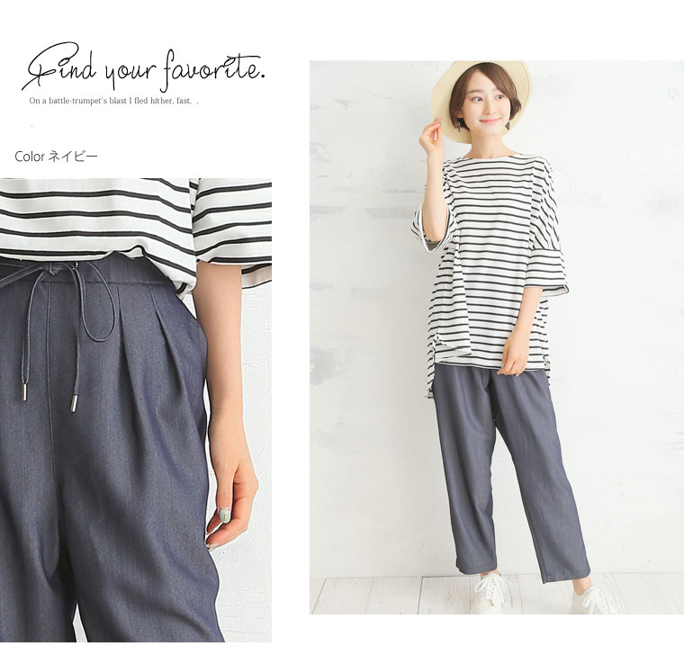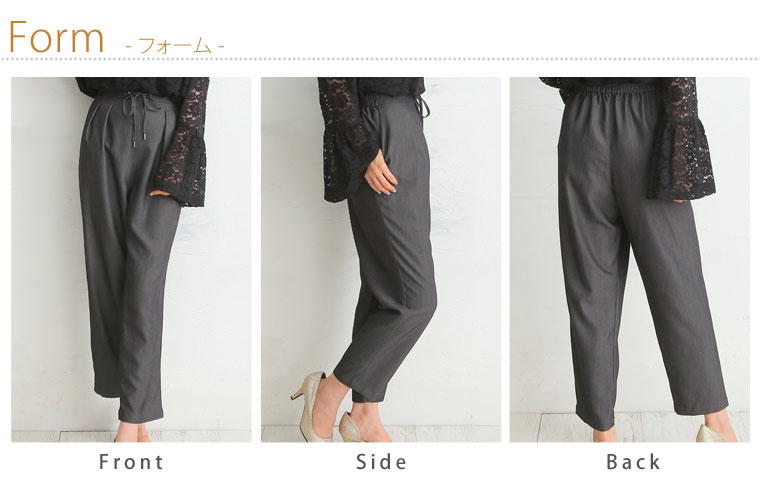 デニム見えするこなれ感のある生地を使用しました。きれいめもカジュアルにも使えるパンツです。