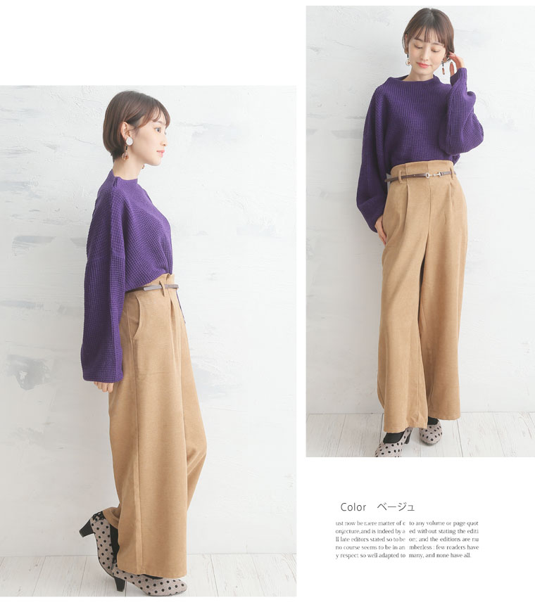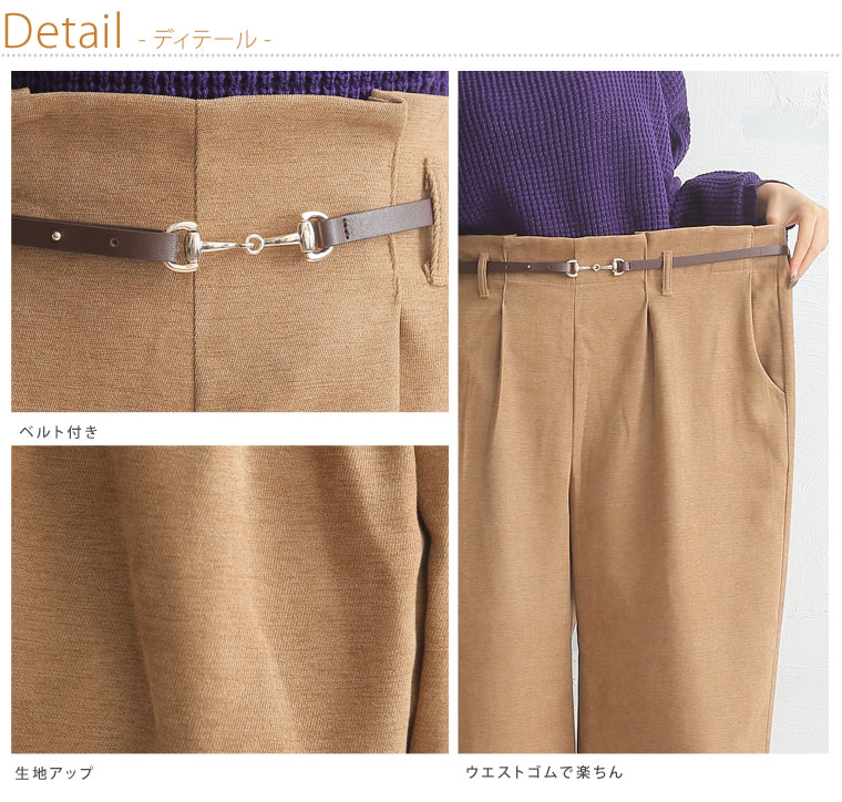 ベルト付きでウエストラインすっきり!!下半身をしっかりカバー出来るワイドパンツ