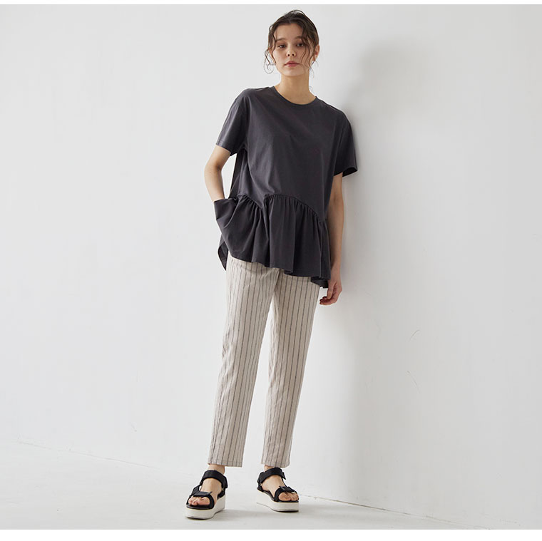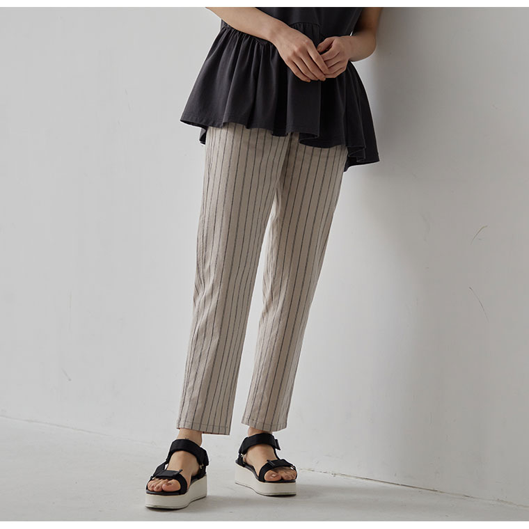 大きいサイズ 【LUMFORLE produced by My:nia】ちょいゆる 麻混パンツ【ウェストゴム】