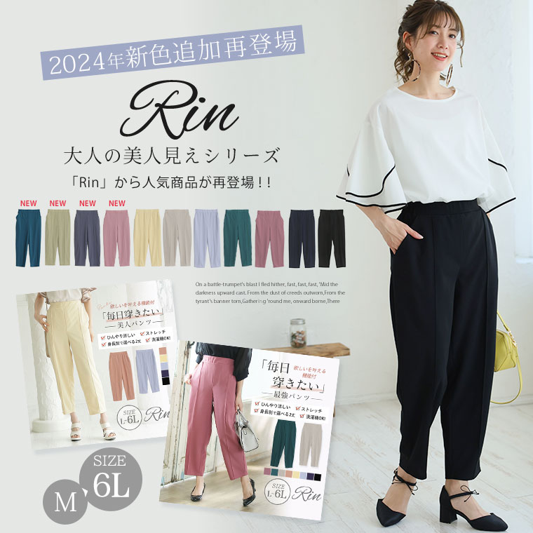 オリジナル LL 3L 4L 5L 6L お尻 腰周り 接触冷感 ストレッチ UVカット 新色・新サイズ追加!! Rin 選べる2丈 ひんやり涼しく 汗かいても気にならない イージーケア テーパードパンツ