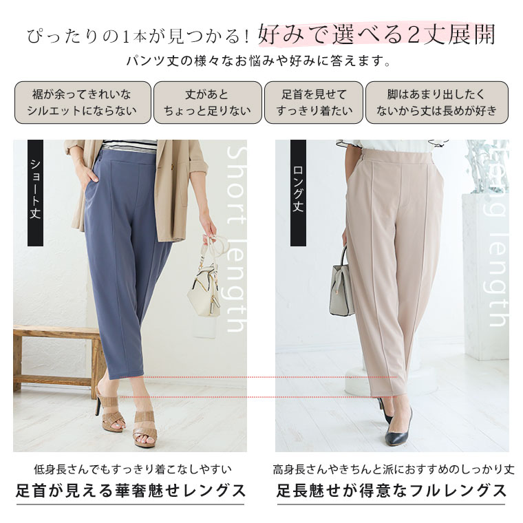 大きいサイズ 新色・新サイズ追加!! Rin 選べる2丈 ひんやり涼しく 汗かいても気にならない イージーケア テーパードパンツ