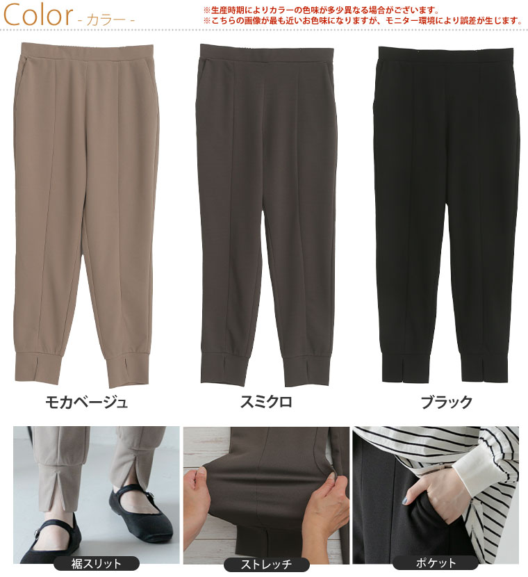 大きいサイズ 【LUMFORLE produced by My:nia】スリット入り ストレッチ 美脚 ジョガーパンツ【ストレッチ】