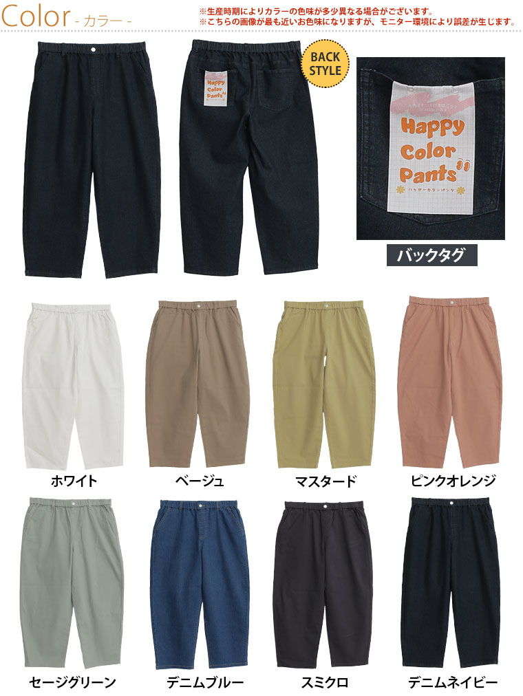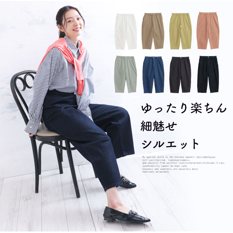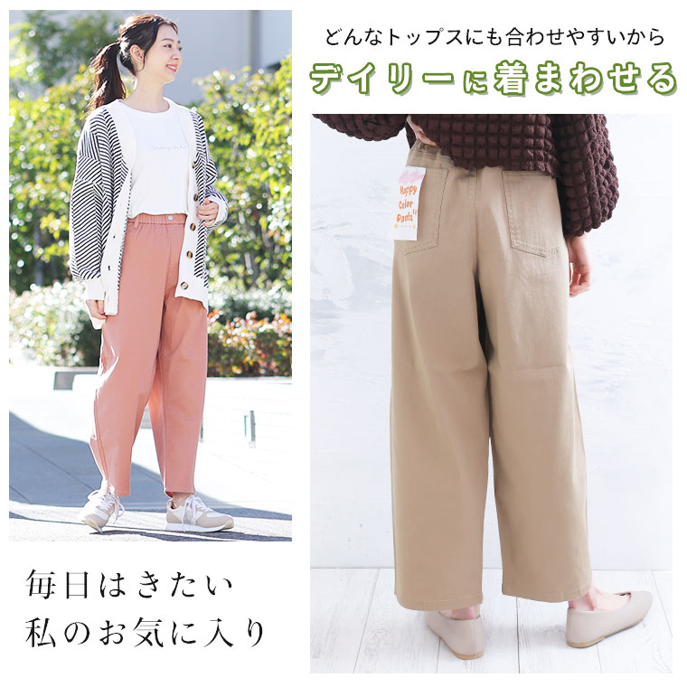ゆったり楽ちん!ウエストゴムでゆったり履けるカラーパンツ