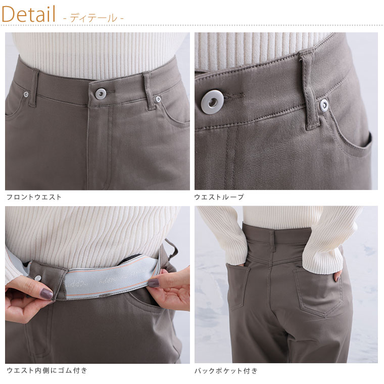 ウエストの内側に裏ゴムが仕込んであるから座っても穿いてもらくらく