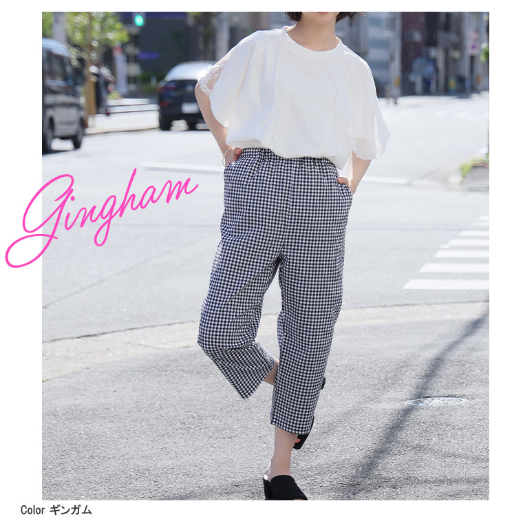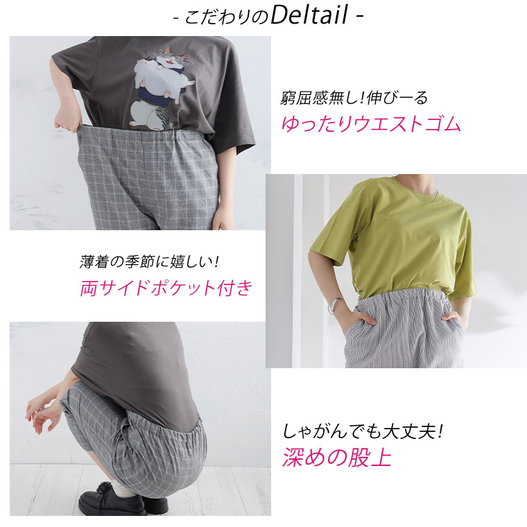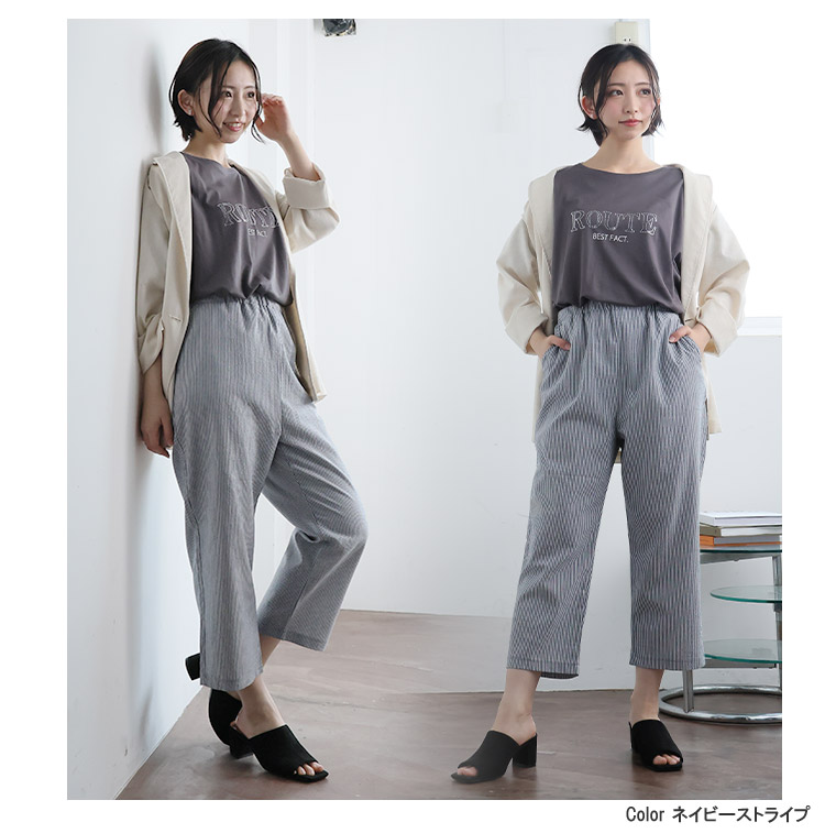 サッカー素材の涼し気夏クロップドパンツ