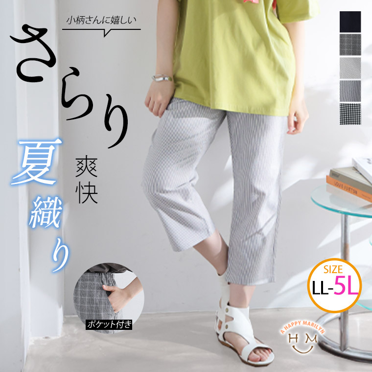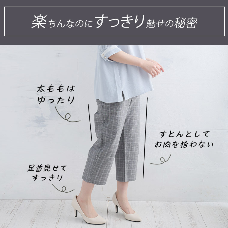 ボトムス テーパードパンツ クロップド 低身長向け お腹 太もも LL 3L 4L 5L 夏 夏物 夏服 夏用 ぽっちゃり ゆったり プラスサイズ 小柄さんのためのシワ知らず 楽々 パンツ【ウェストゴム】【ストレッチ】